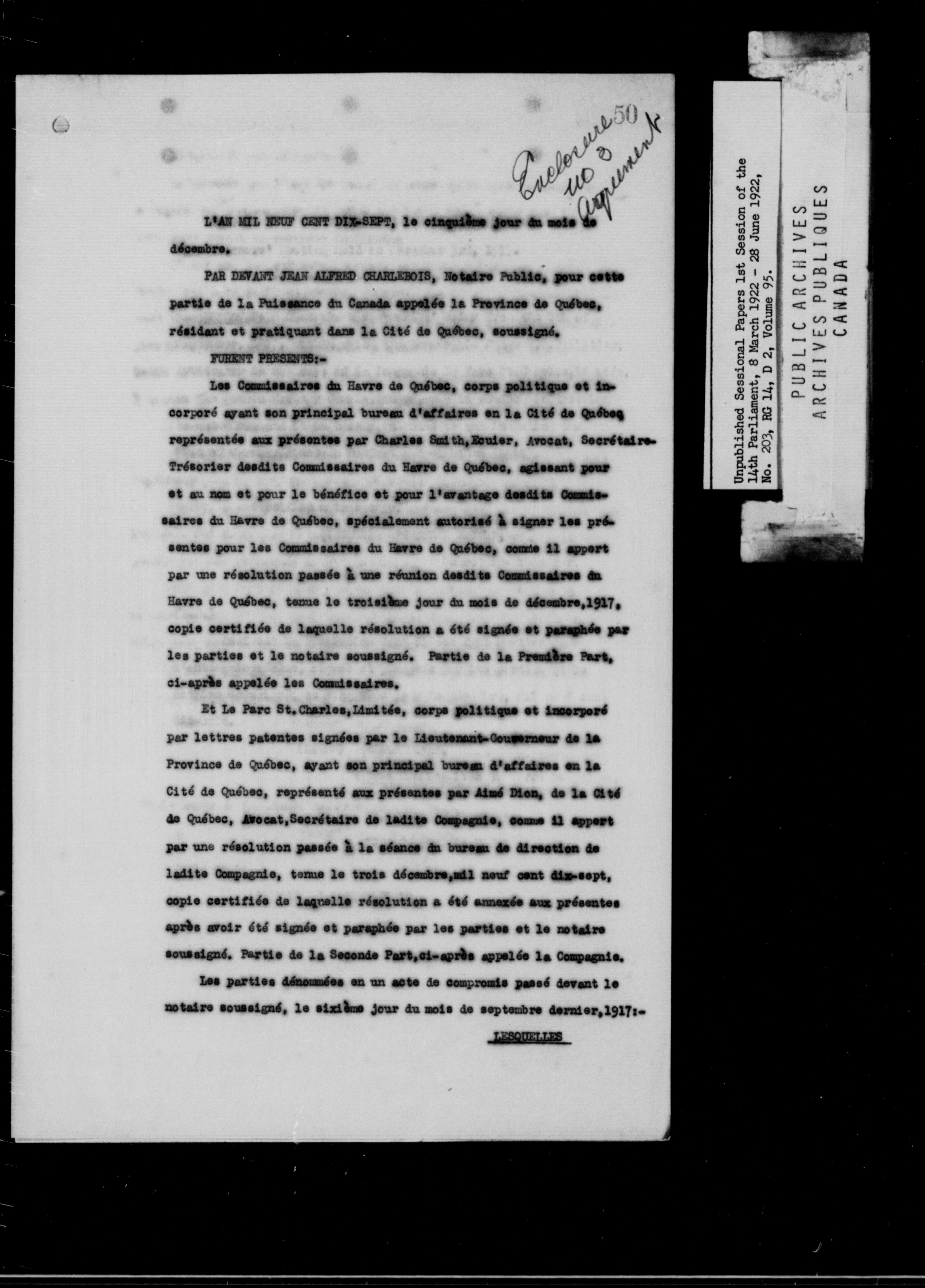 Unpublished Sessional Papers; 1st Session of the 14th Parliament, 8 March 1922-28 June 1922 - 6963