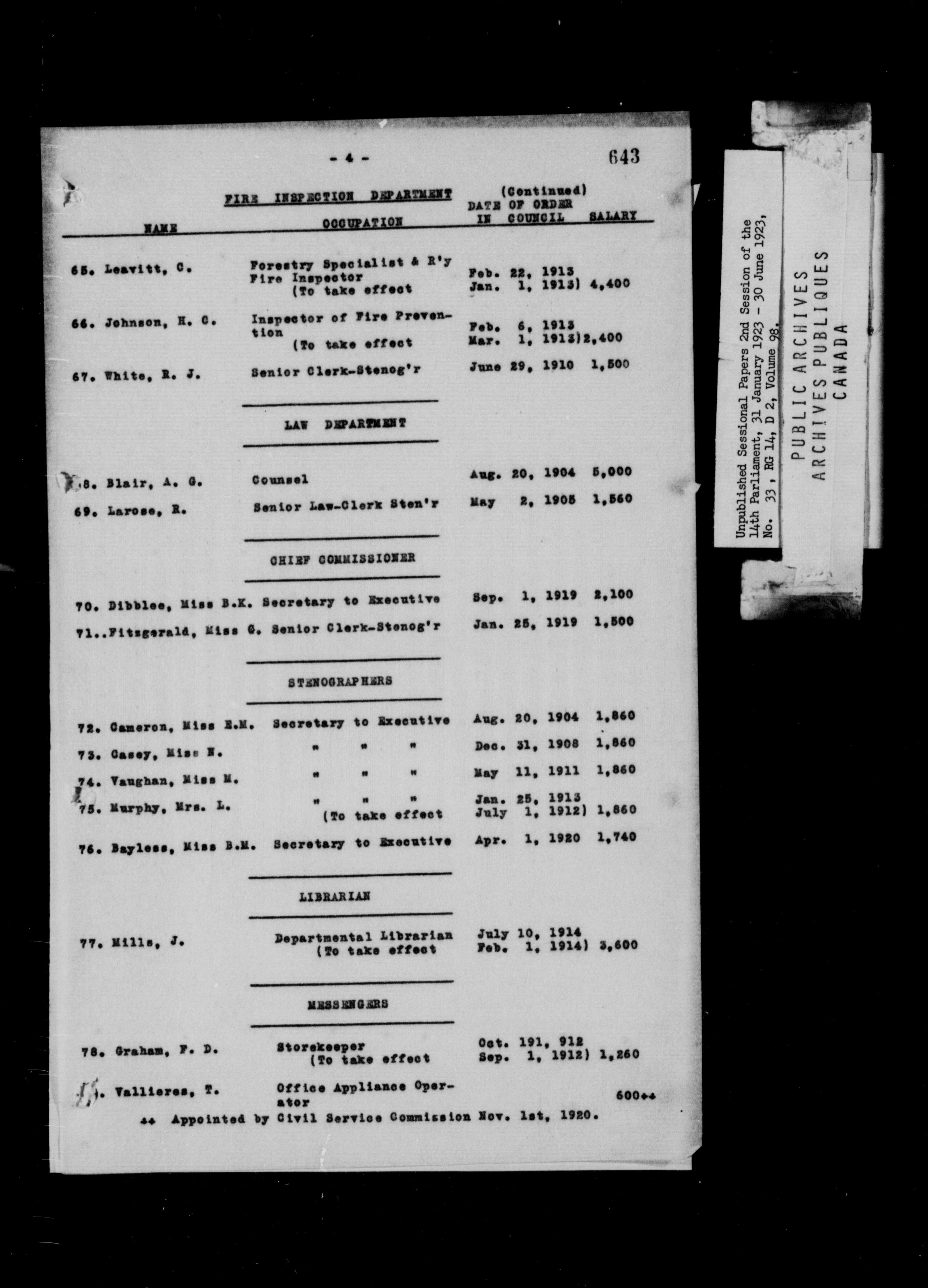 Unpublished Sessional Papers; 1st Session of the 14th Parliament, 8 March 1922-28 June 1922 - 6964