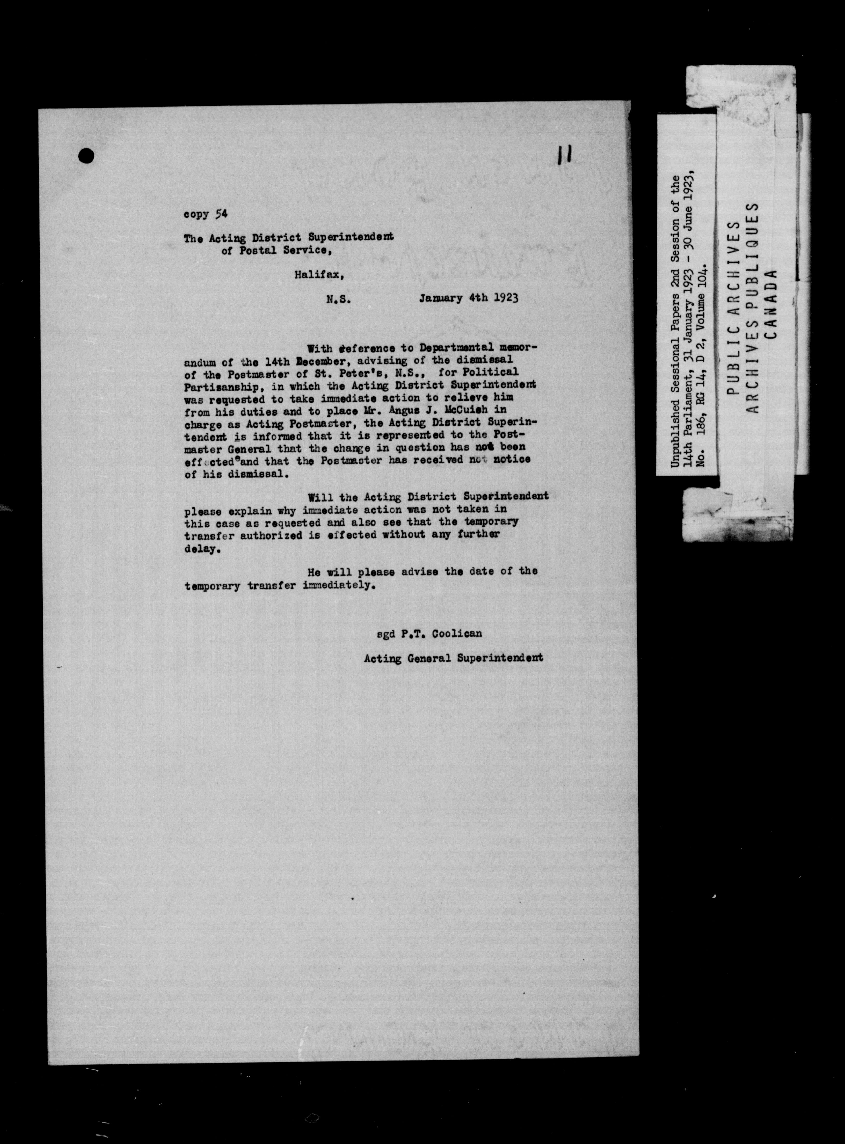 Unpublished Sessional Papers; 2nd Session of the 14th Parliament, 31 Jan. 1923-30 June 1923 - 6967