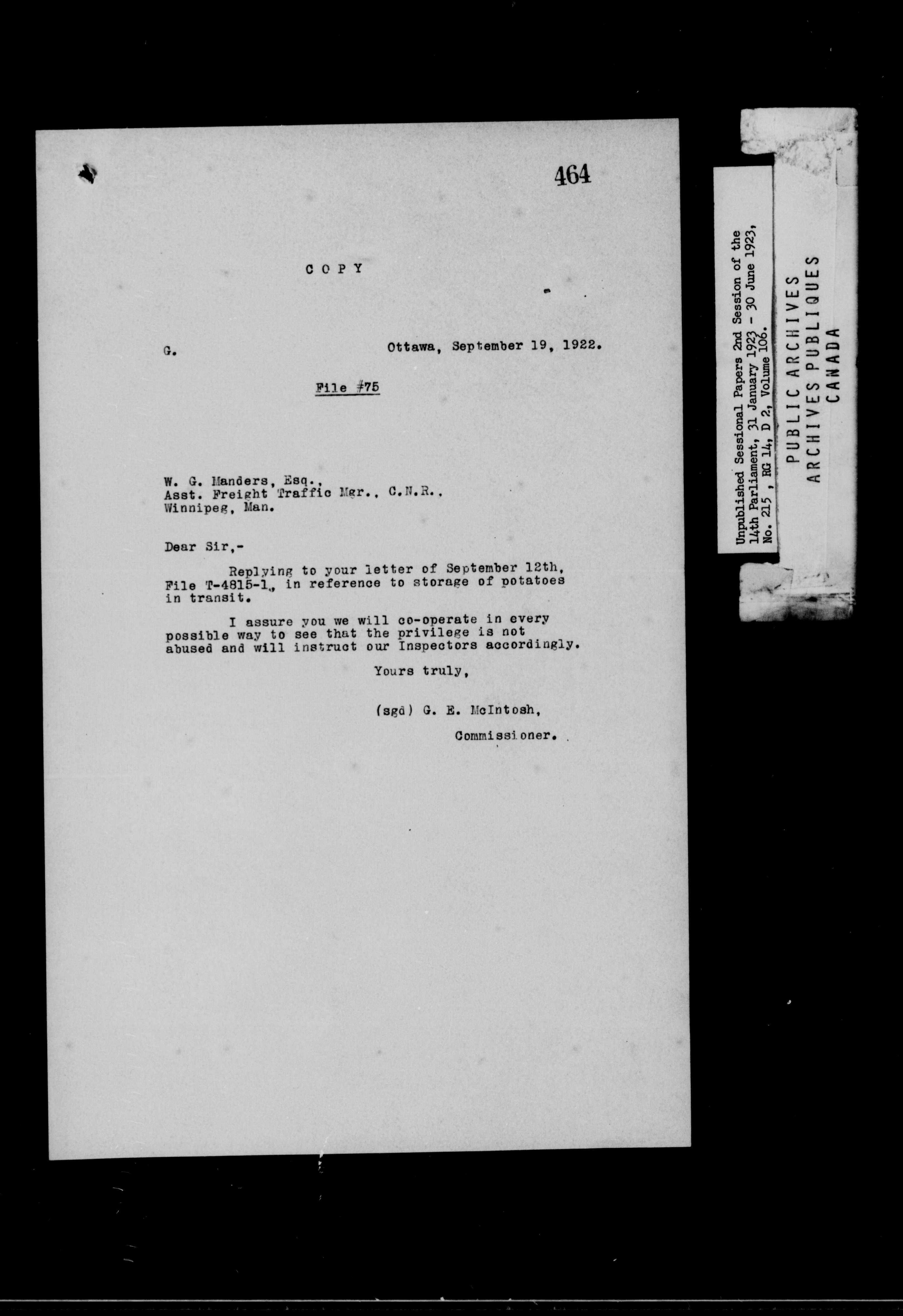 Unpublished Sessional Papers; 2nd Session of the 14th Parliament, 31 Jan. 1923-30 June 1923 - 6968