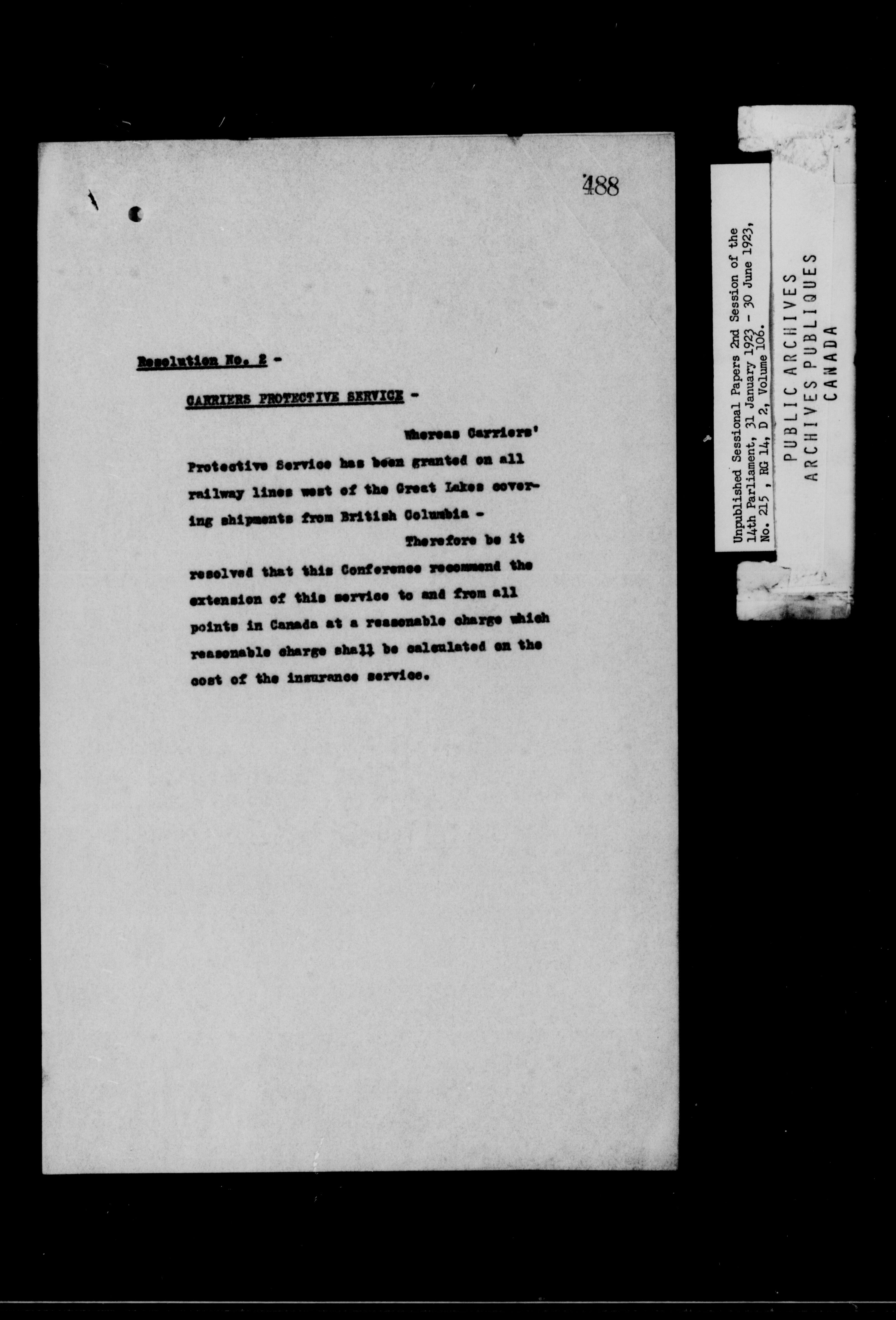 Unpublished Sessional Papers; 2nd Session of the 14th Parliament, 31 Jan. 1923-30 June 1923 - 6968