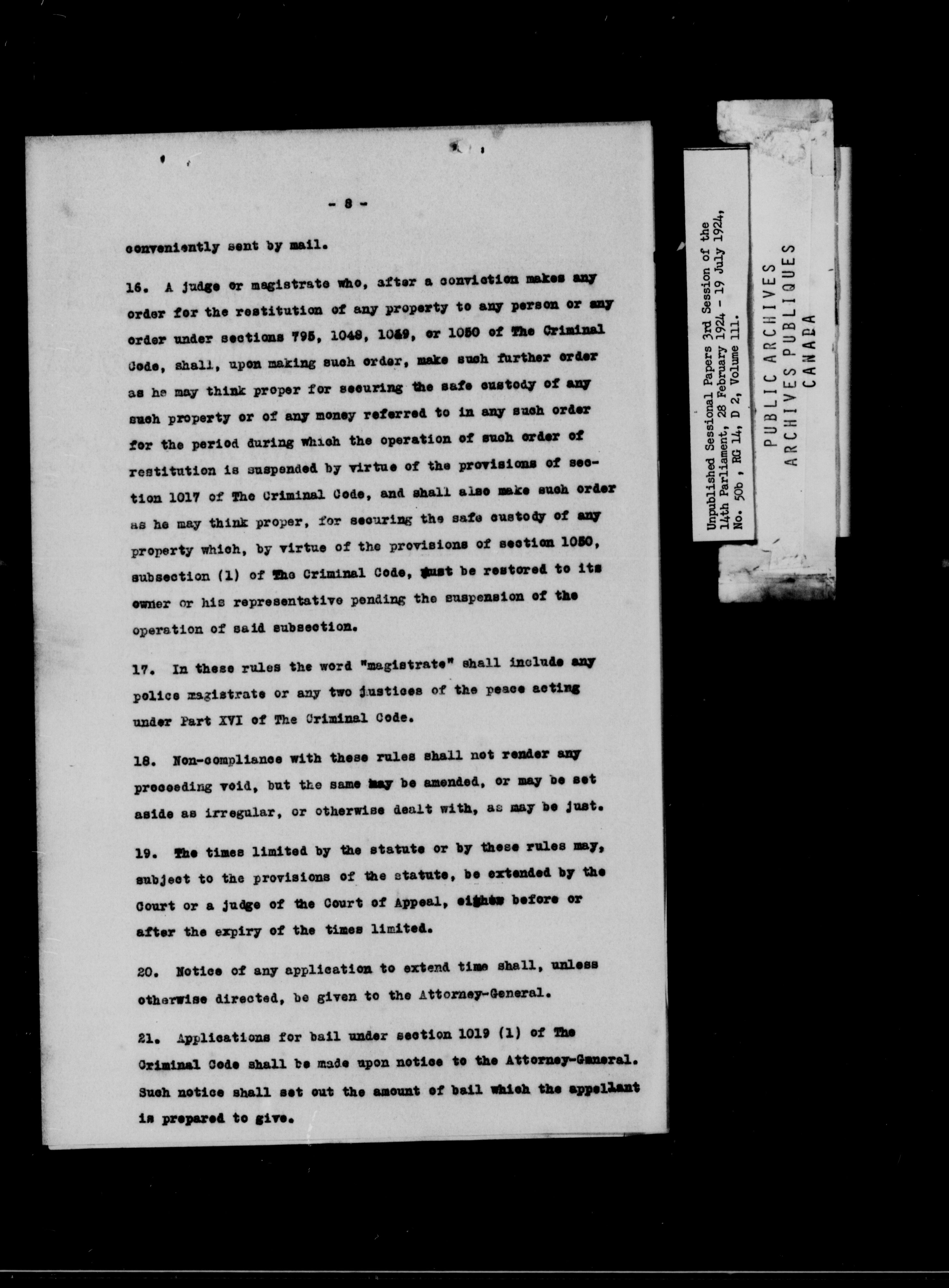 Unpublished Sessional Papers; 2nd Session of the 14th Parliament, 31 Jan. 1923-30 June 1923 - 6969