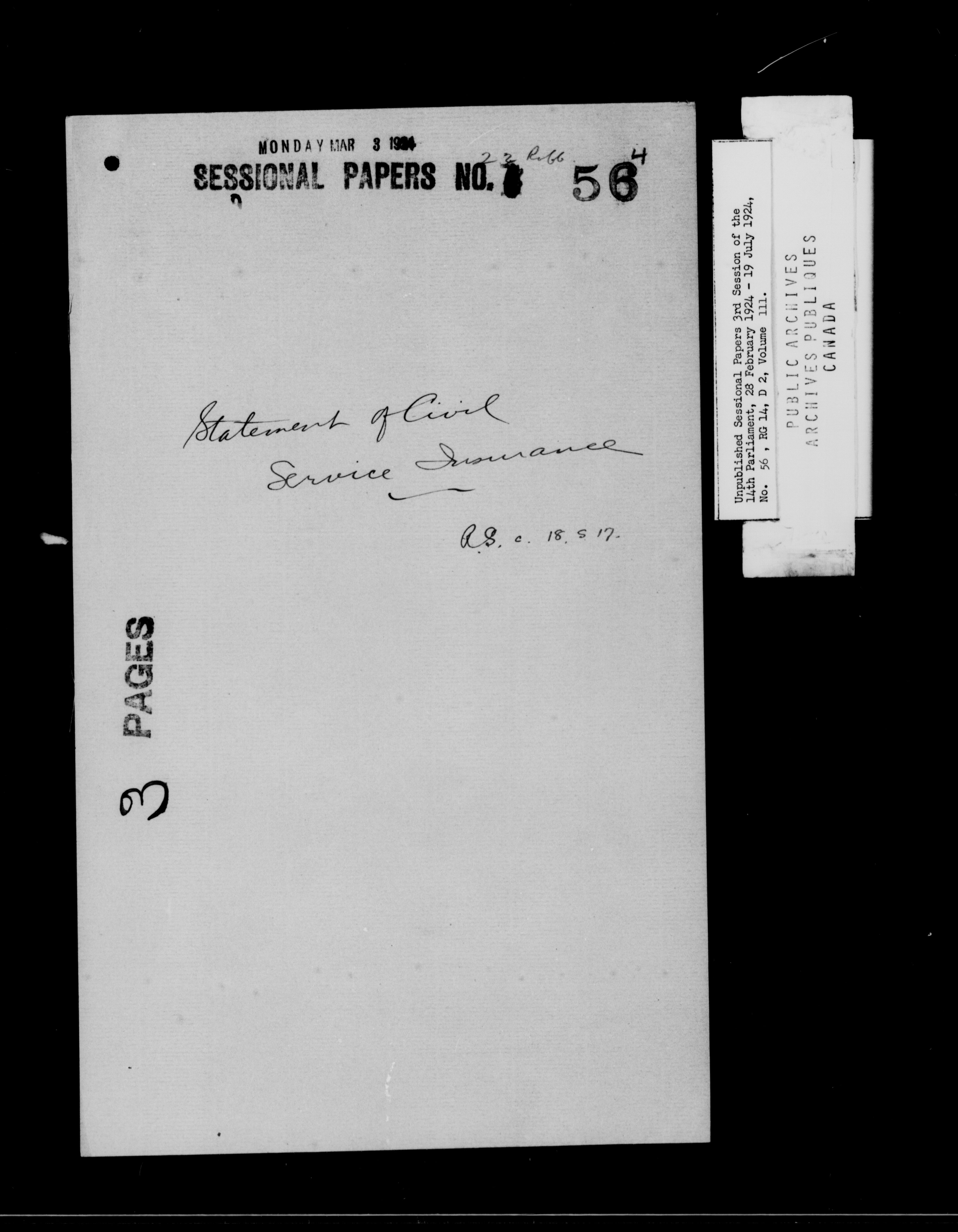 Unpublished Sessional Papers; 2nd Session of the 14th Parliament, 31 Jan. 1923-30 June 1923 - 6969