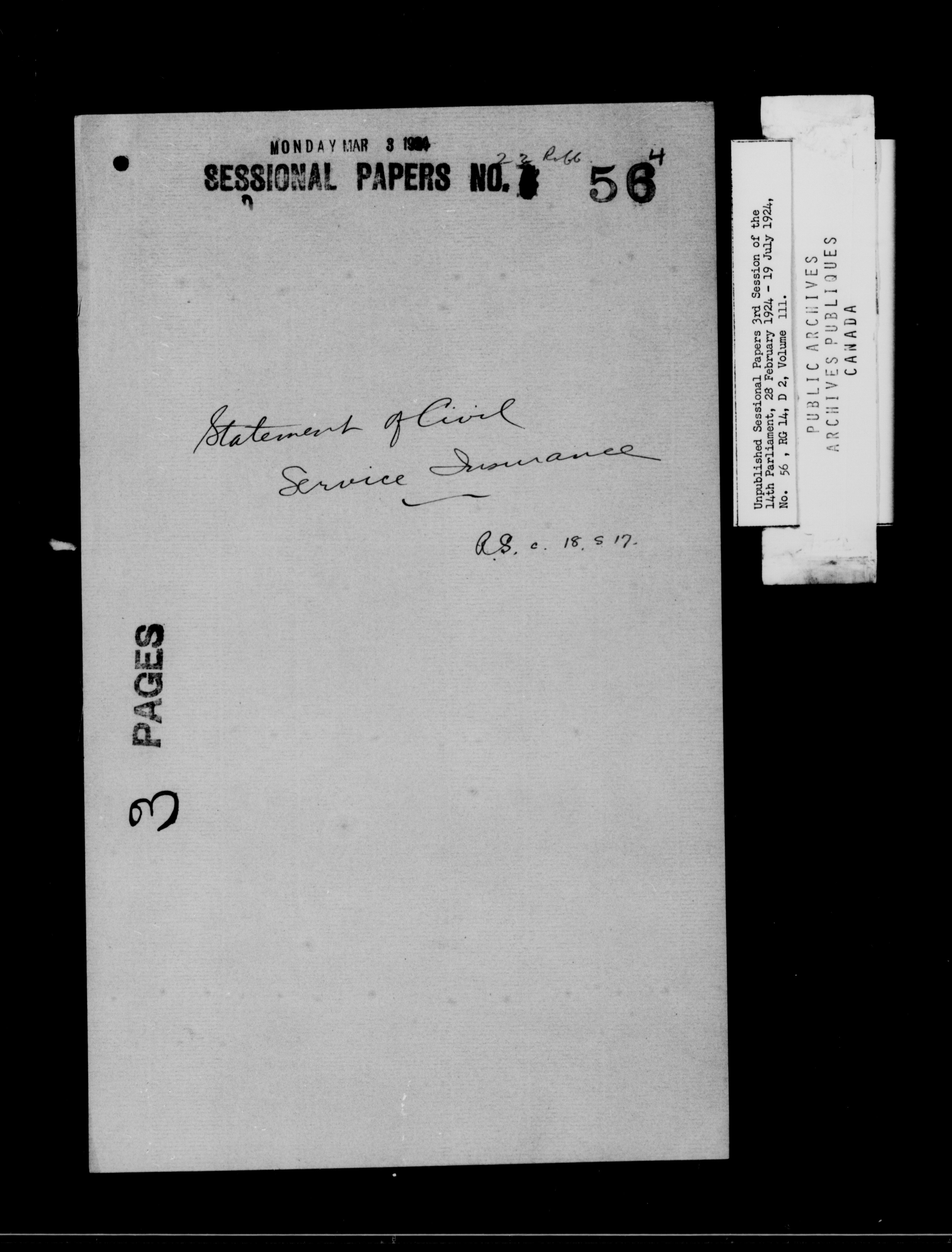 Unpublished Sessional Papers; 2nd Session of the 14th Parliament, 31 Jan. 1923-30 June 1923 - 6969
