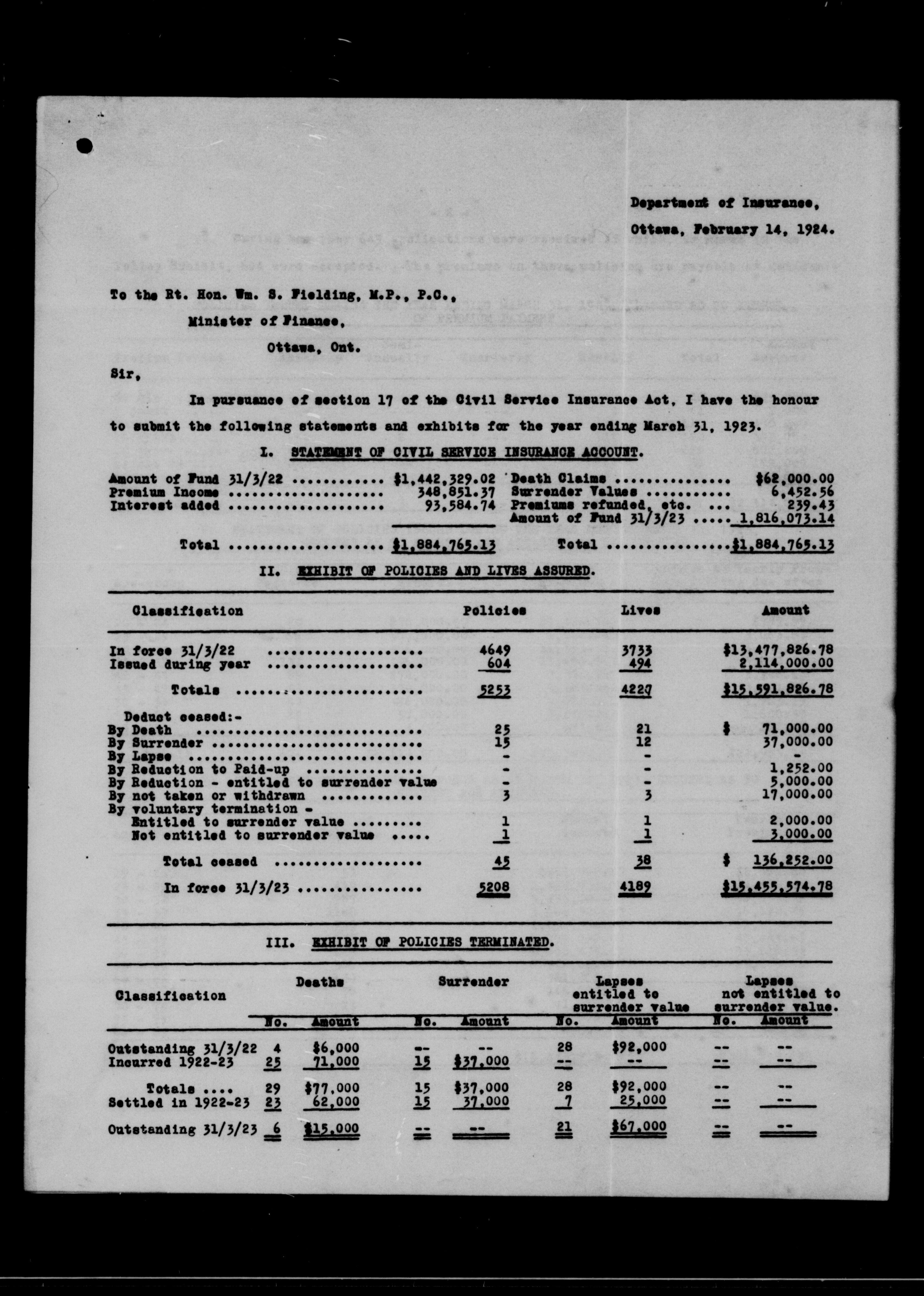 Unpublished Sessional Papers; 2nd Session of the 14th Parliament, 31 Jan. 1923-30 June 1923 - 6969