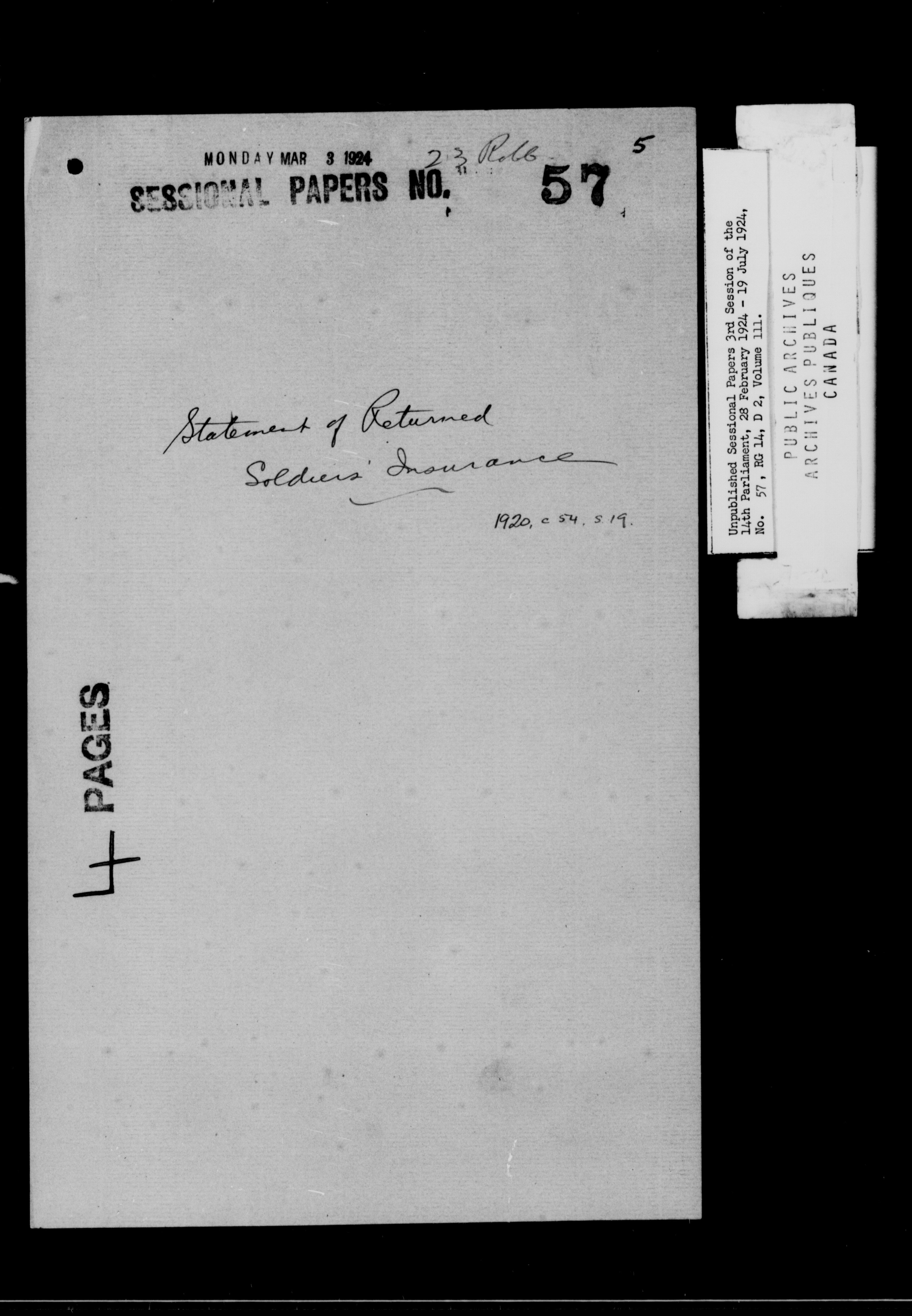 Unpublished Sessional Papers; 2nd Session of the 14th Parliament, 31 Jan. 1923-30 June 1923 - 6969