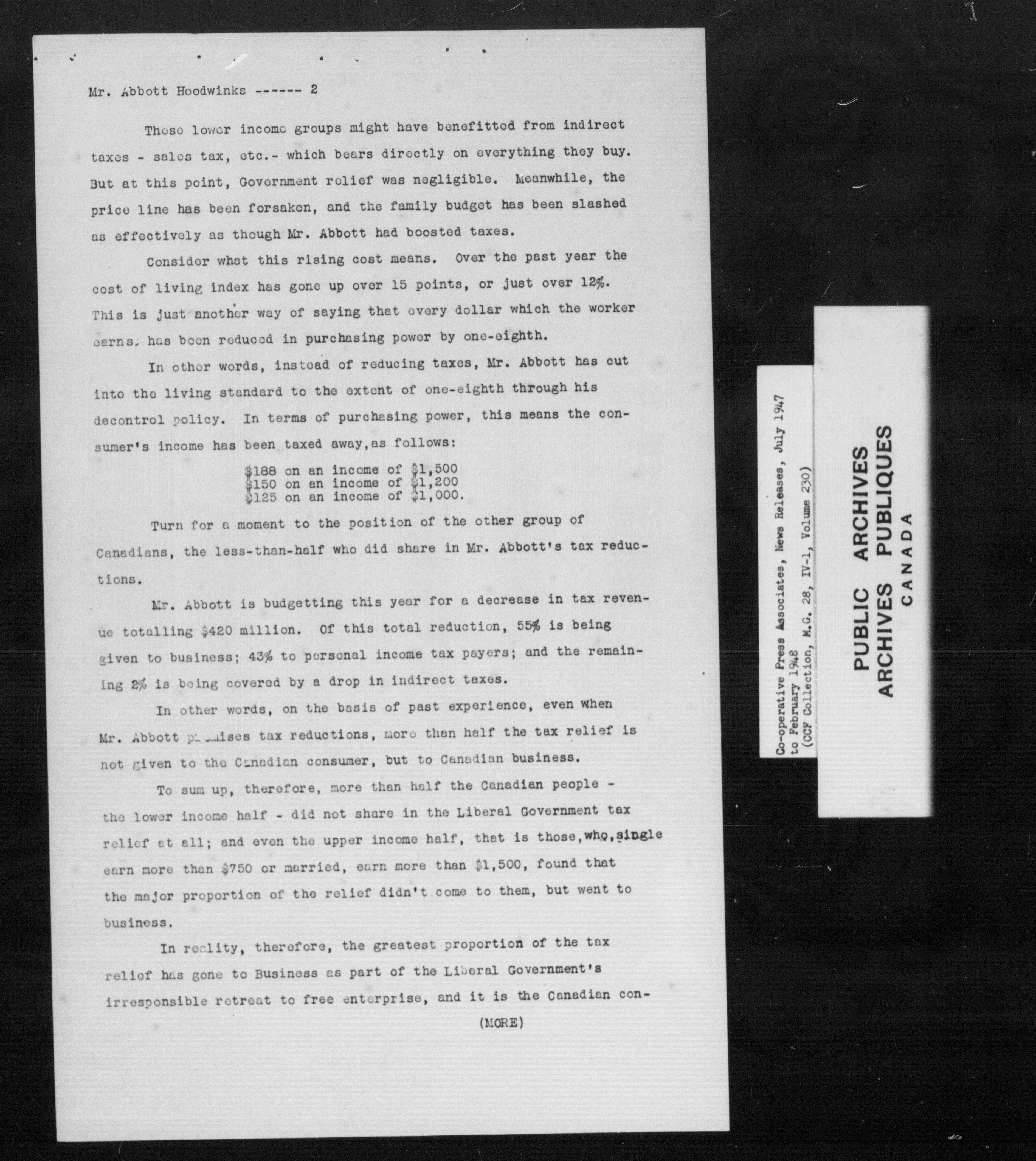 Co-operative Commonwealth Federation (MG 28, IV I) Co-operative Press associates News Releases (1944-1960) - 7022