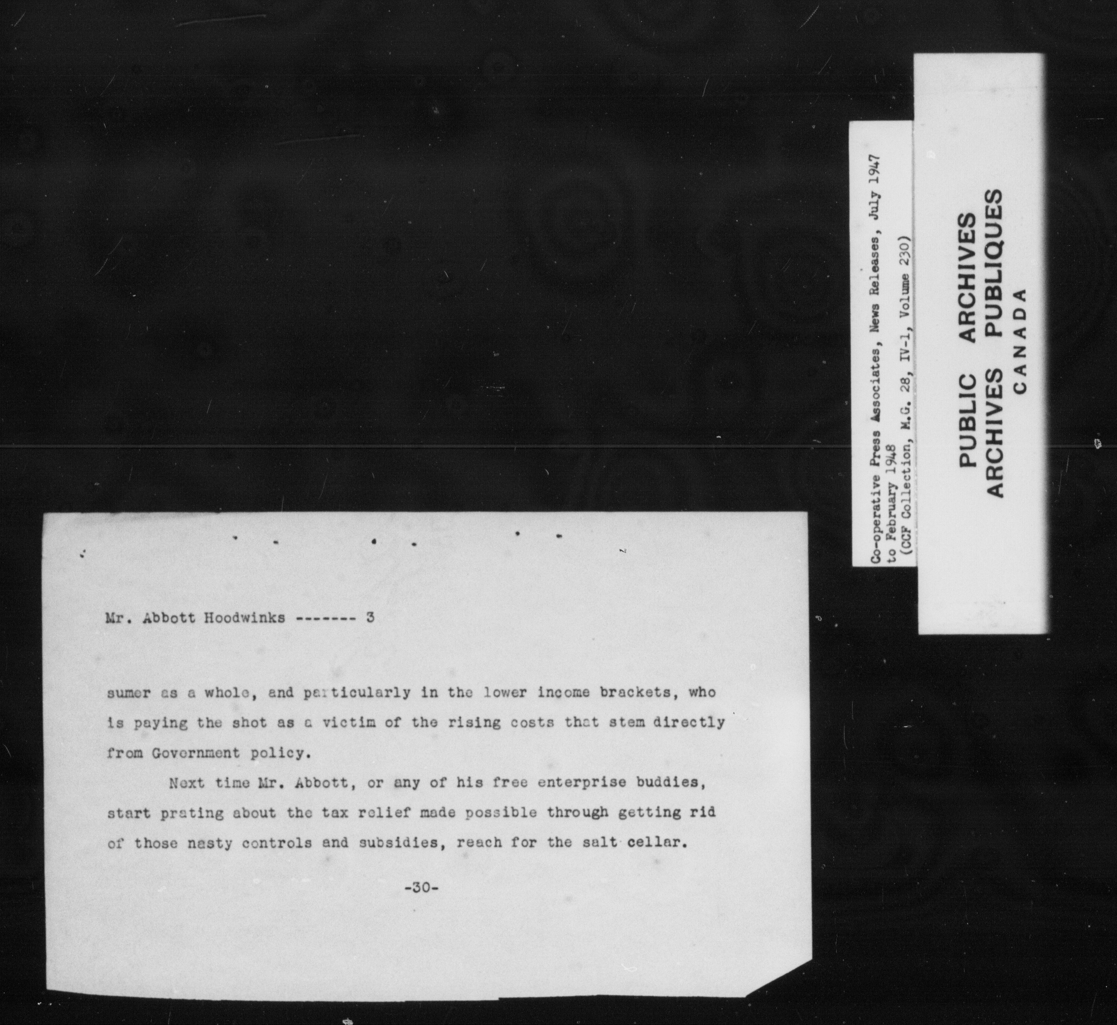 Co-operative Commonwealth Federation (MG 28, IV I) Co-operative Press associates News Releases (1944-1960) - 7022