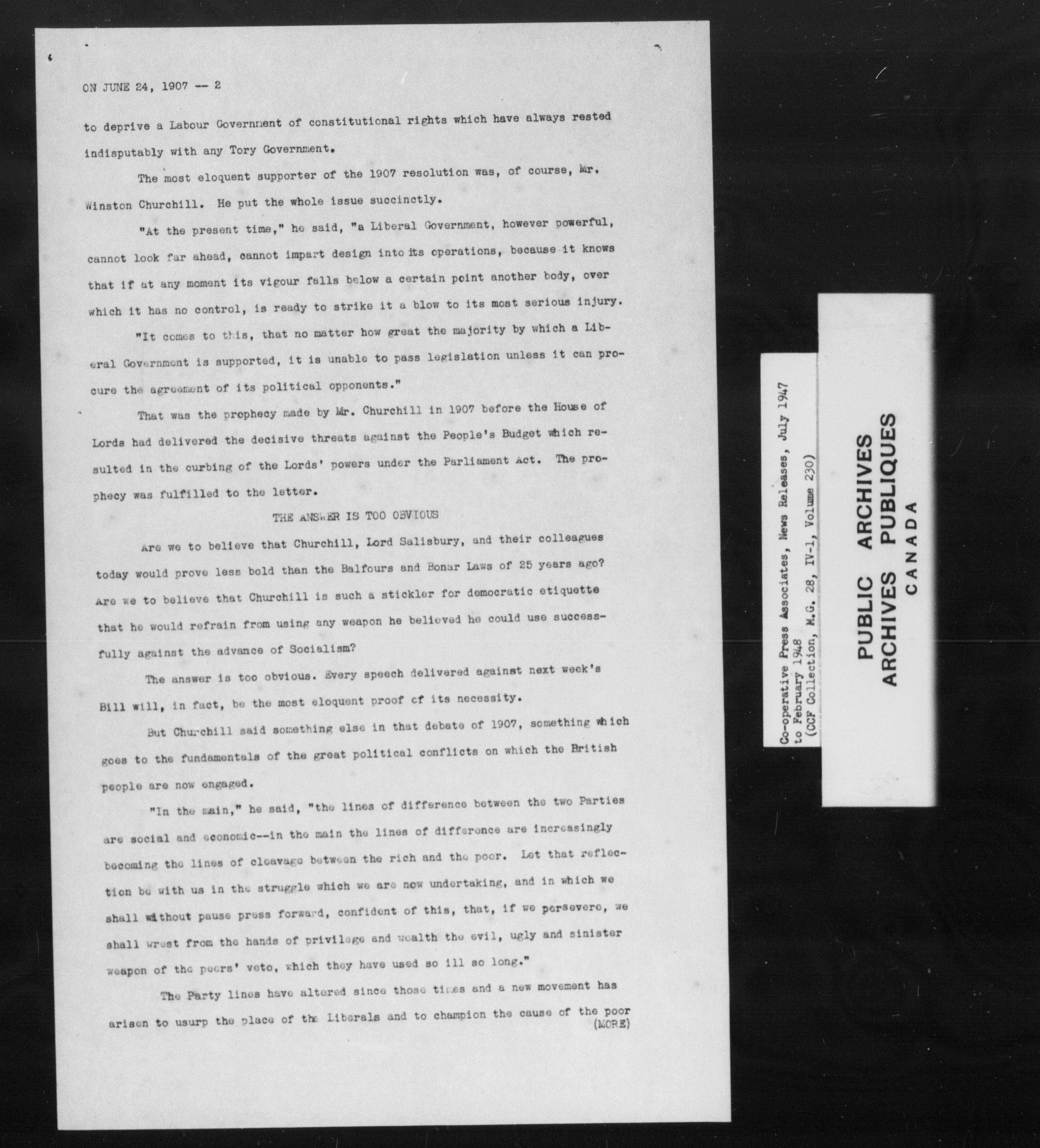 Co-operative Commonwealth Federation (MG 28, IV I) Co-operative Press associates News Releases (1944-1960) - 7022