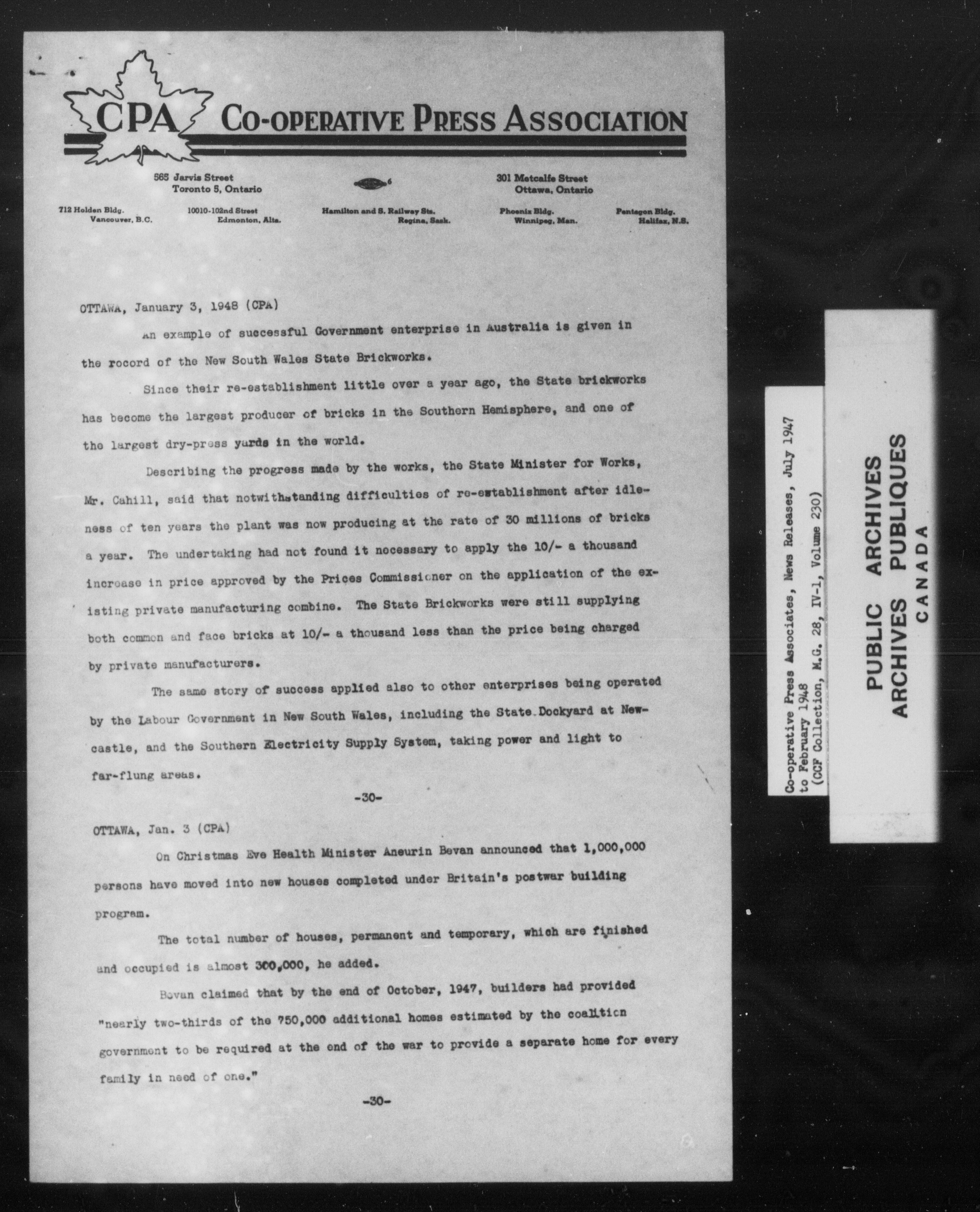 Co-operative Commonwealth Federation (MG 28, IV I) Co-operative Press associates News Releases (1944-1960) - 7023