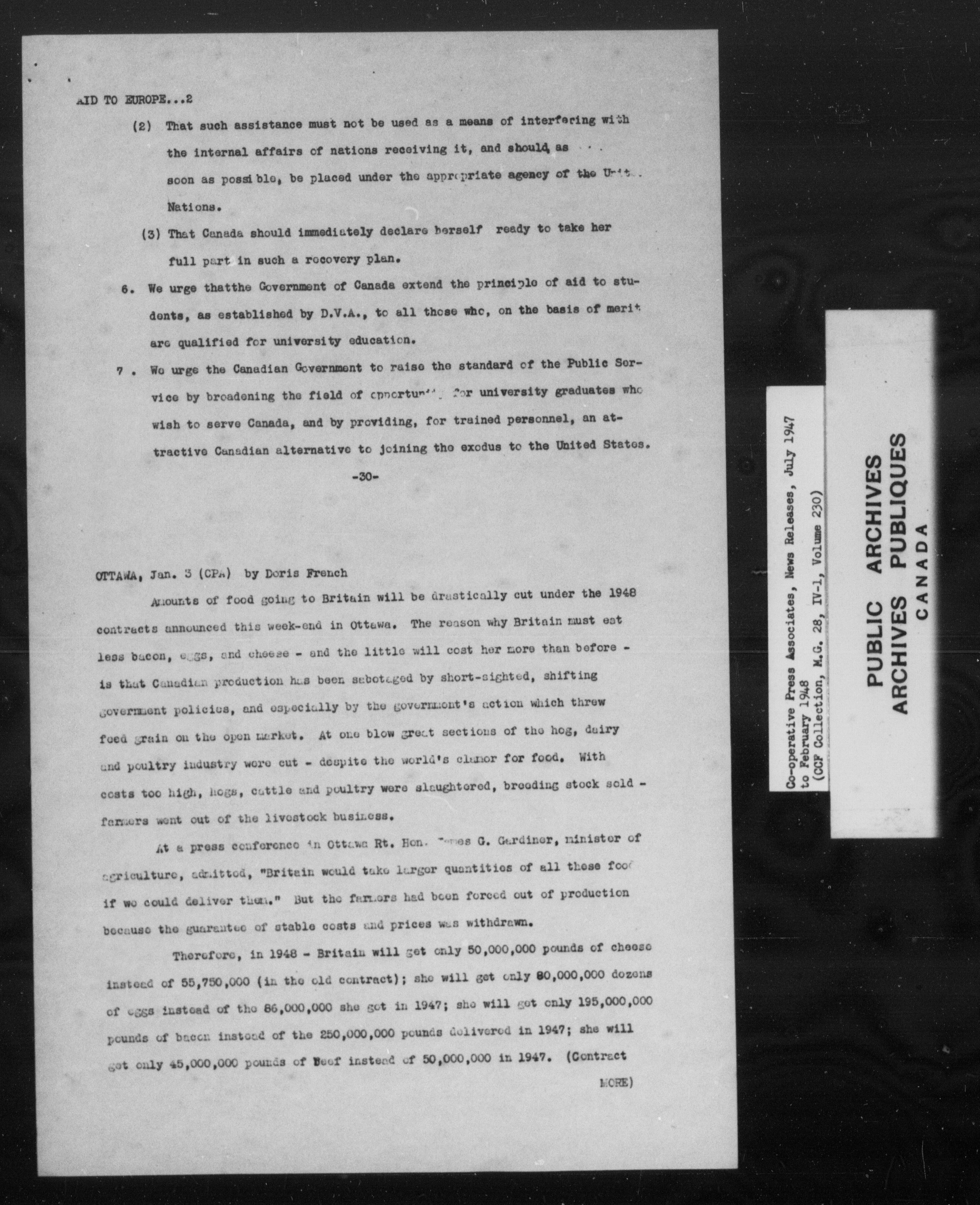 Co-operative Commonwealth Federation (MG 28, IV I) Co-operative Press associates News Releases (1944-1960) - 7023