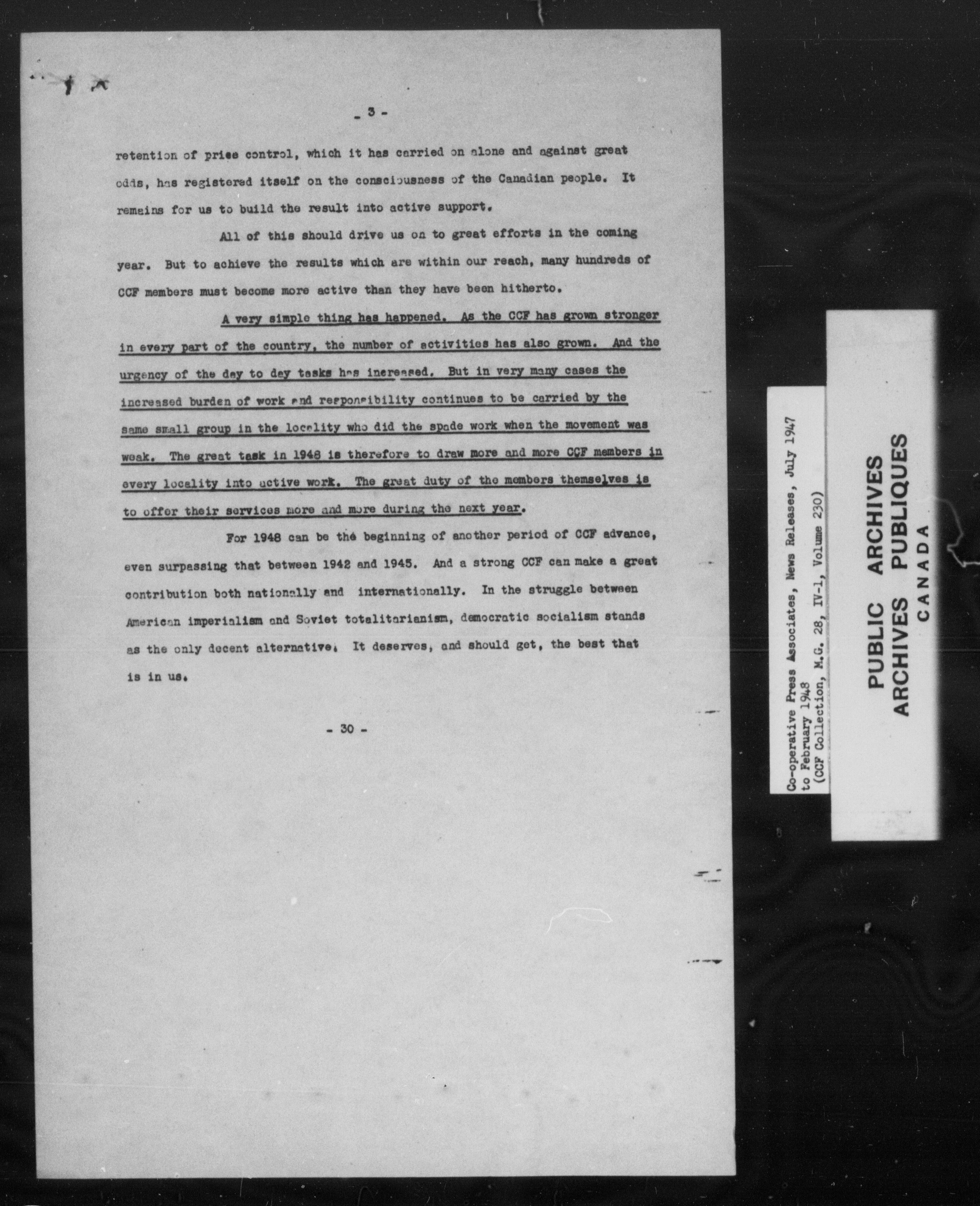 Co-operative Commonwealth Federation (MG 28, IV I) Co-operative Press associates News Releases (1944-1960) - 7023