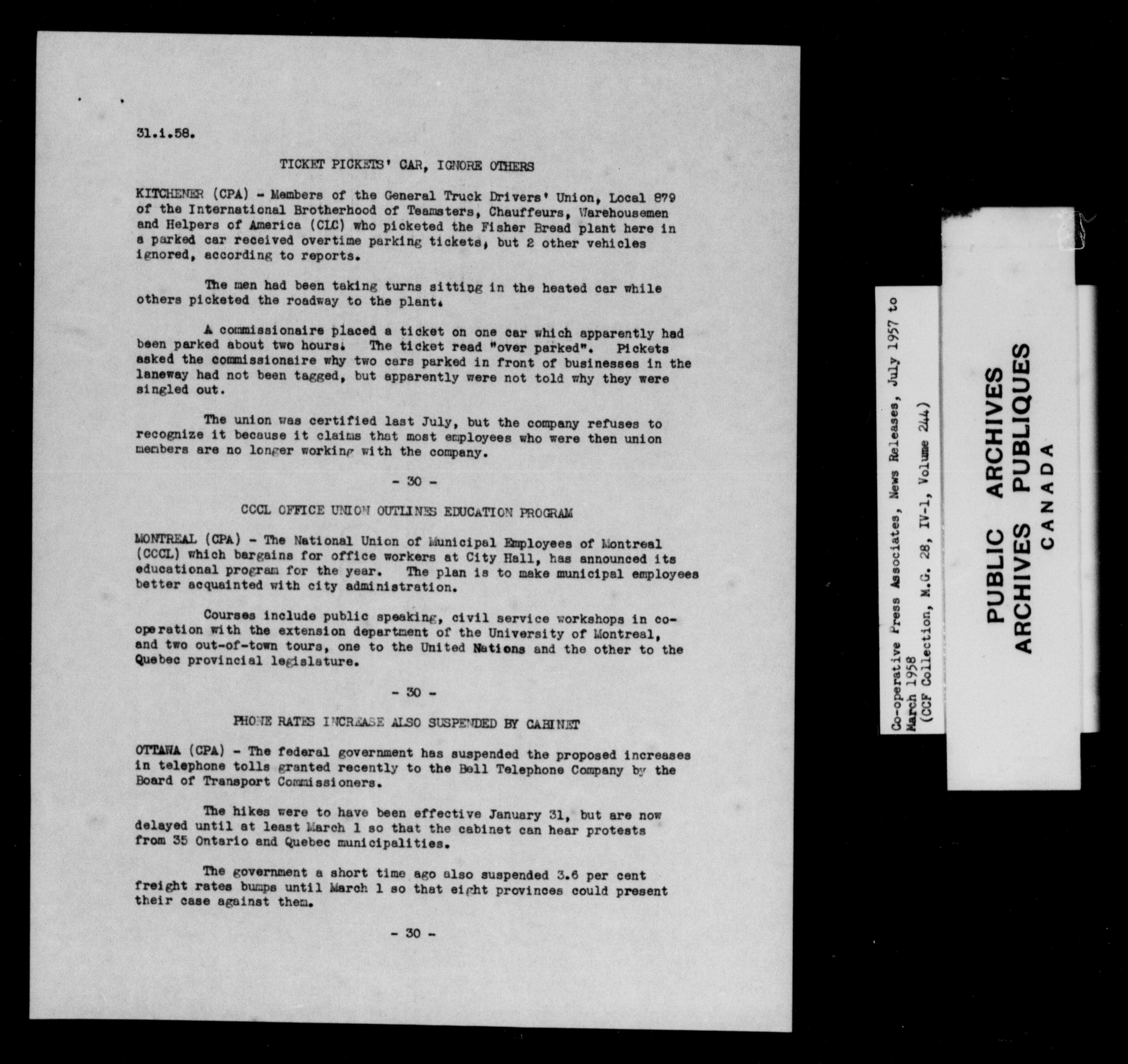 Co-operative Commonwealth Federation (MG 28, IV I) Co-operative Press associates News Releases (1944-1960) - 7026