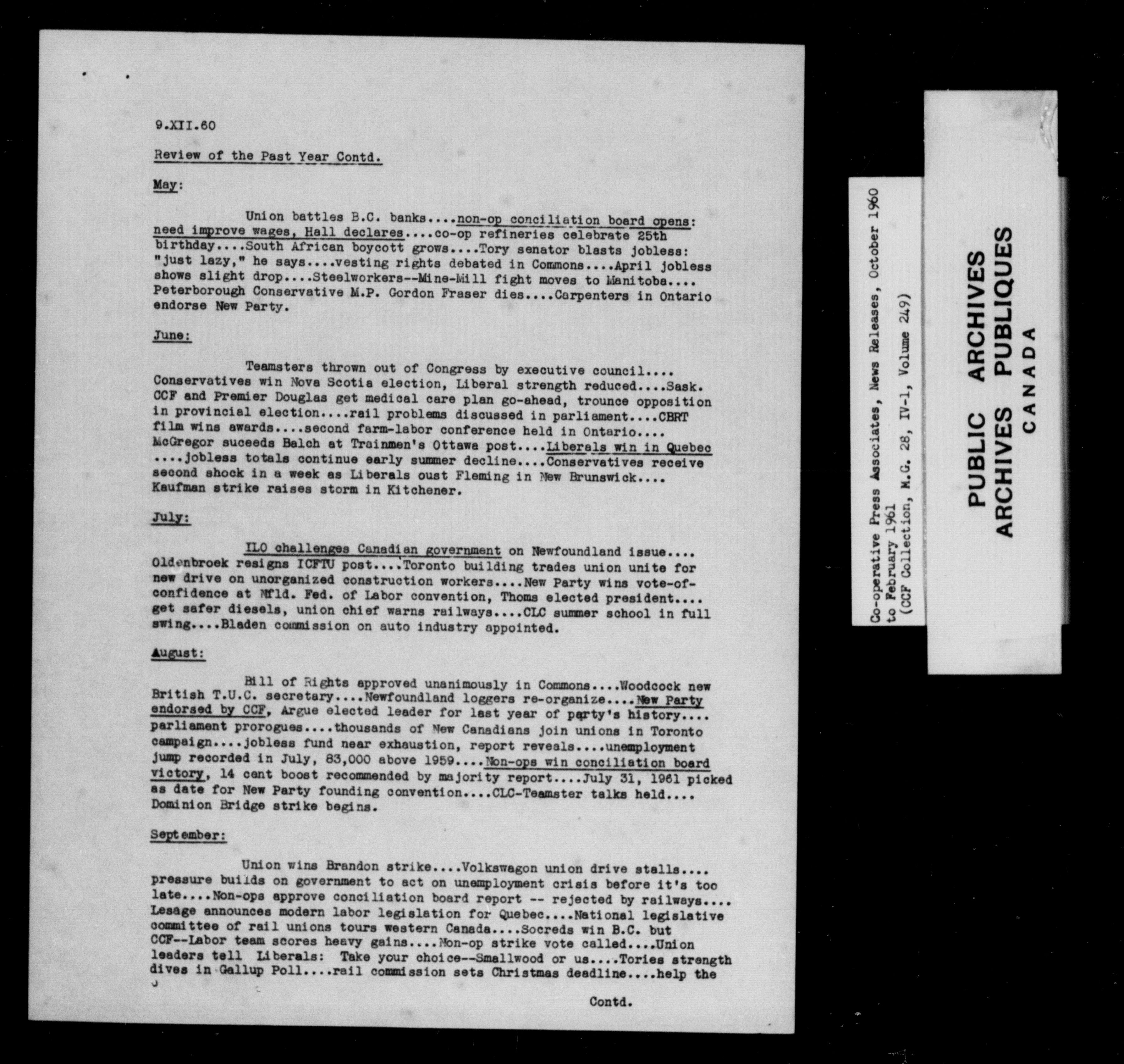 Co-operative Commonwealth Federation (MG 28, IV I) Co-operative Press associates News Releases (1944-1960) - 7028