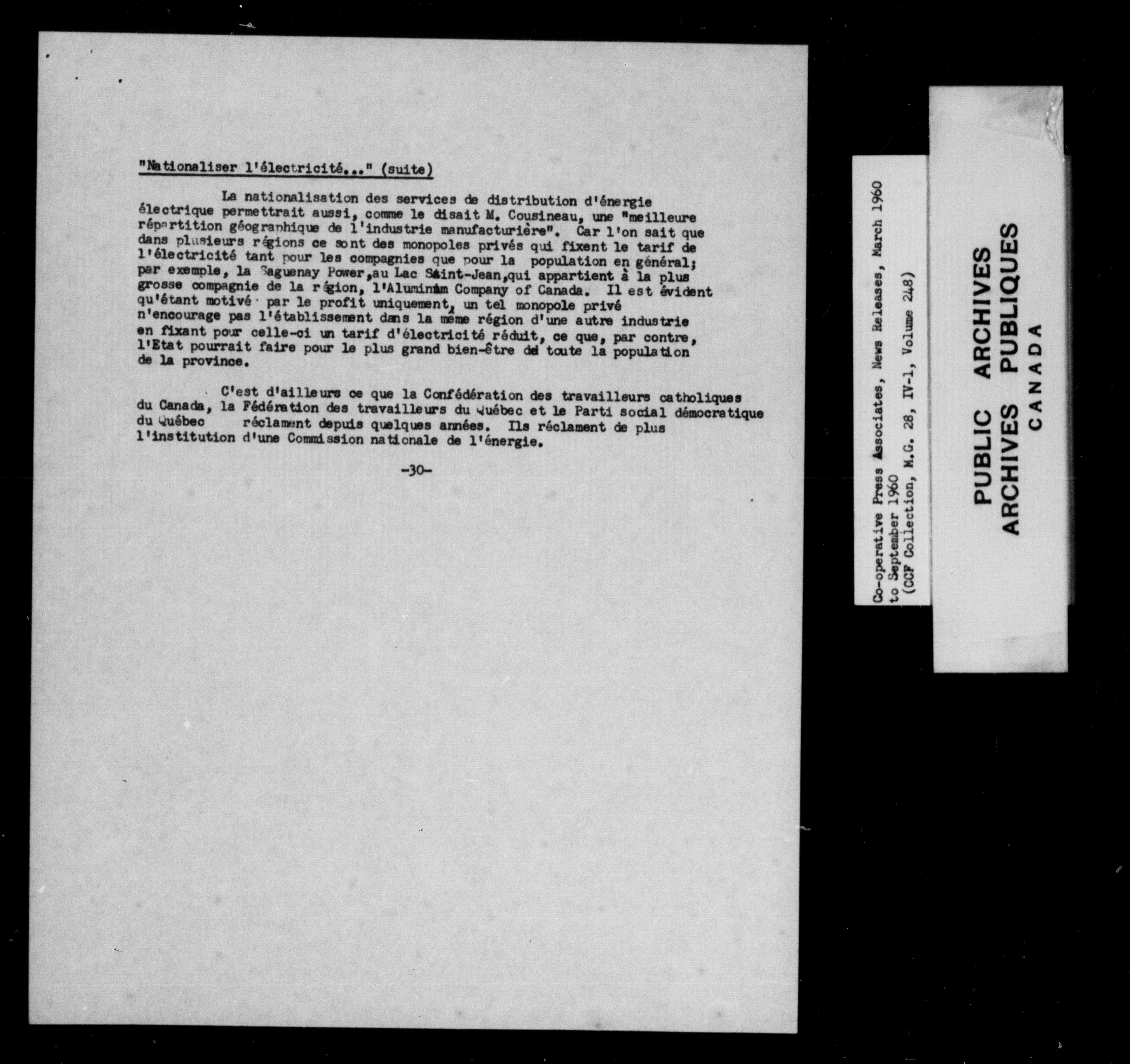 Co-operative Commonwealth Federation (MG 28, IV I) Co-operative Press associates News Releases (1944-1960) - 7028