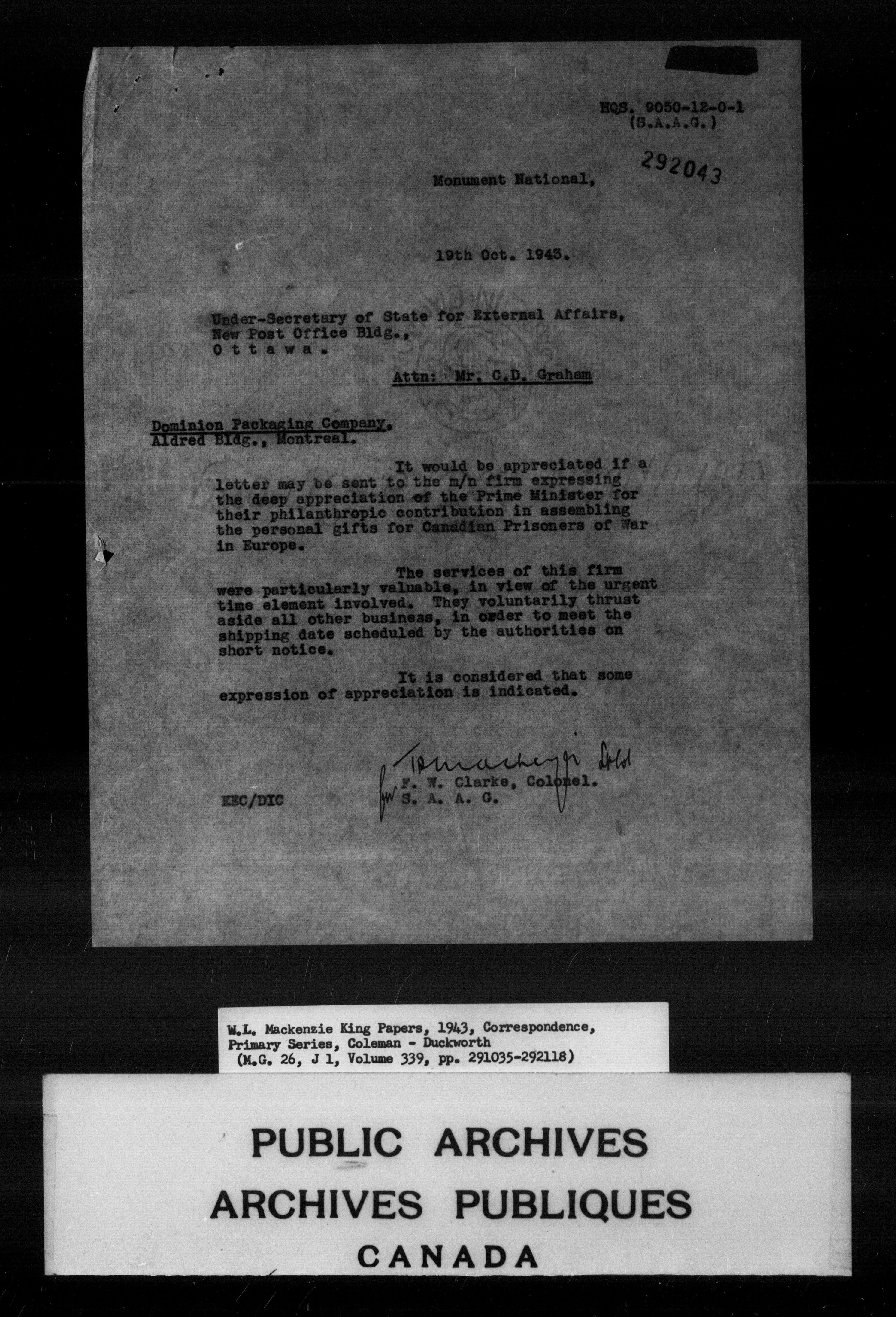William Lyon Mackenzie King : Primary series correspondence (J1) - 7036