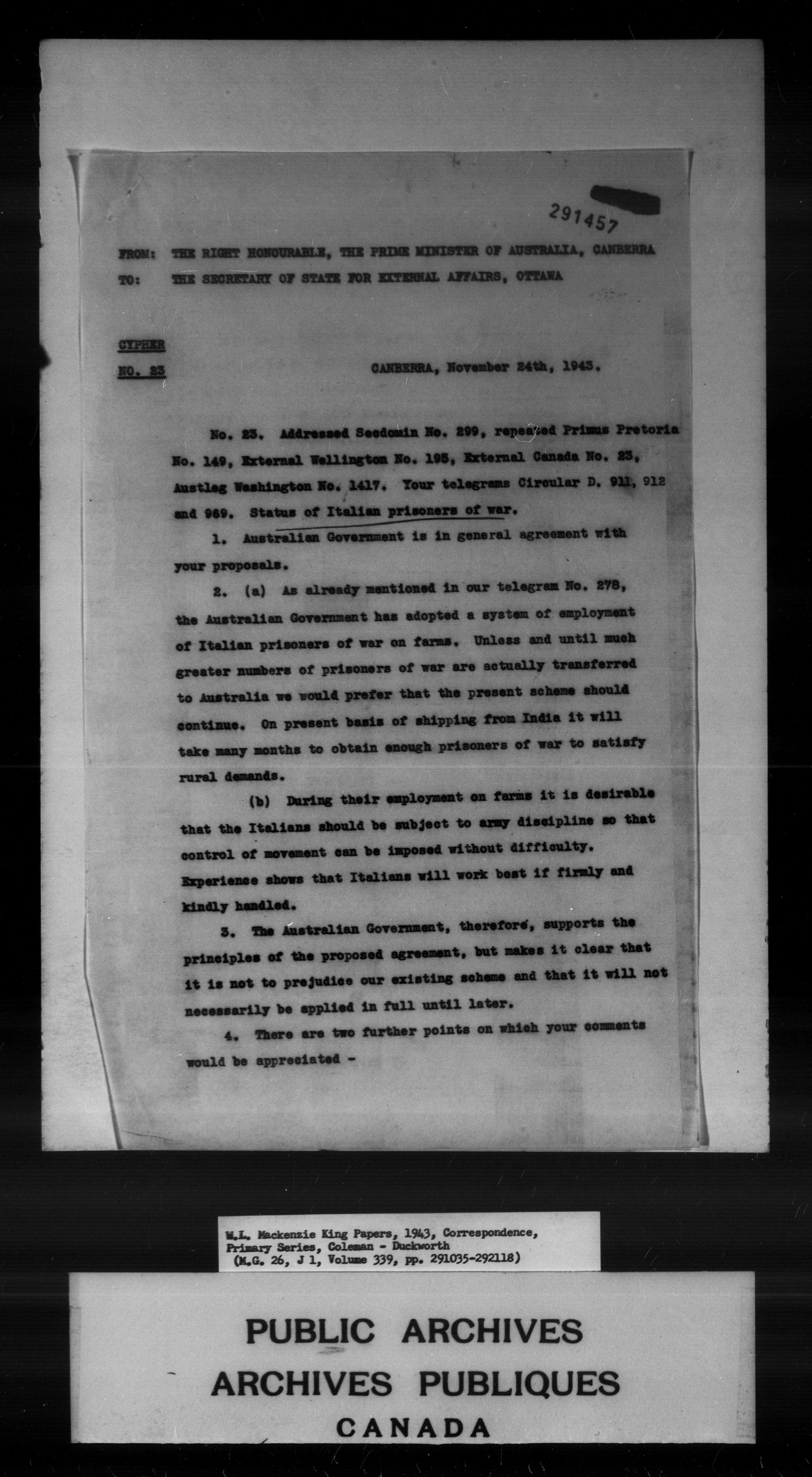William Lyon Mackenzie King : Primary series correspondence (J1) - 7036