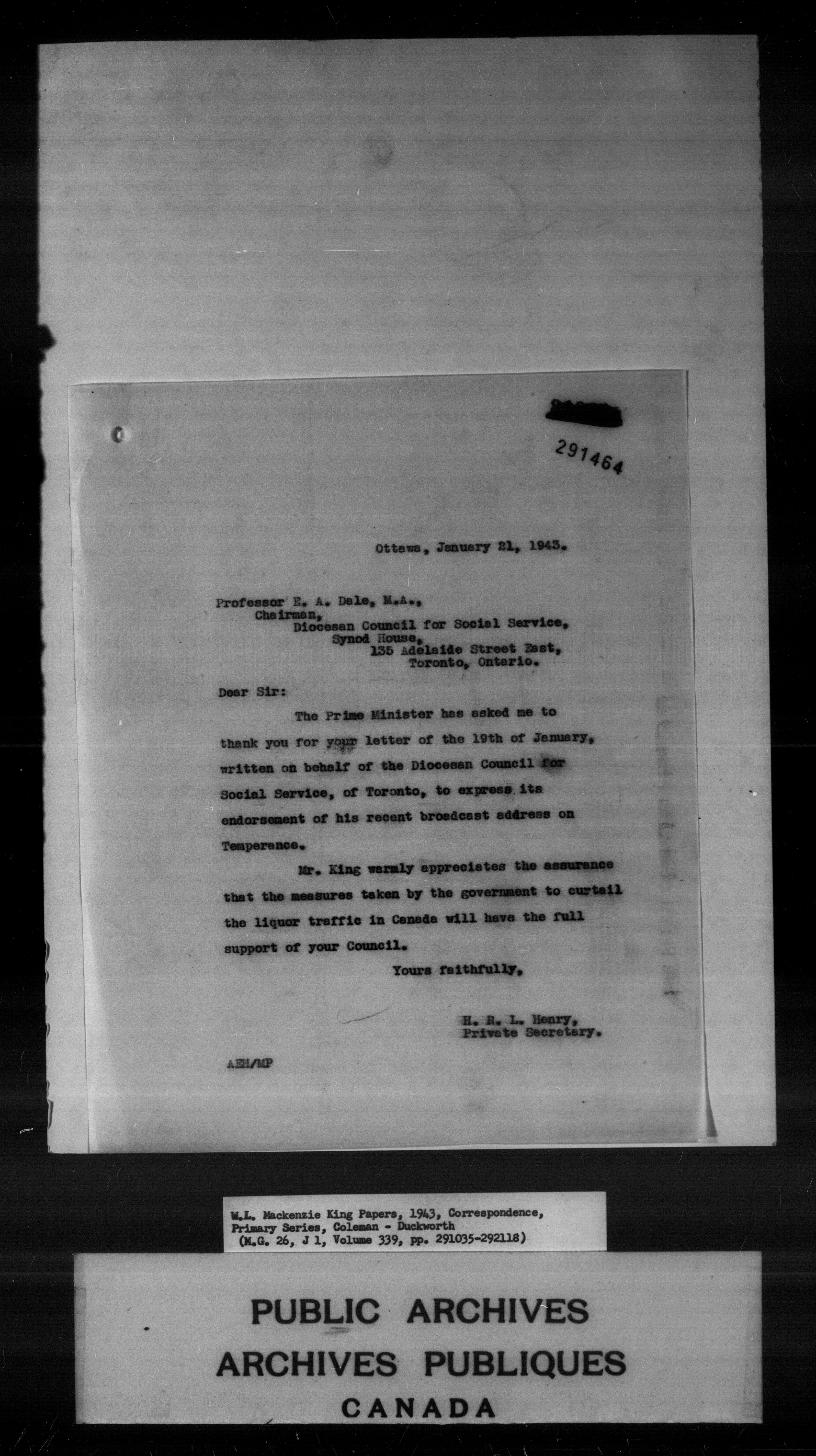 William Lyon Mackenzie King : Primary series correspondence (J1) - 7036