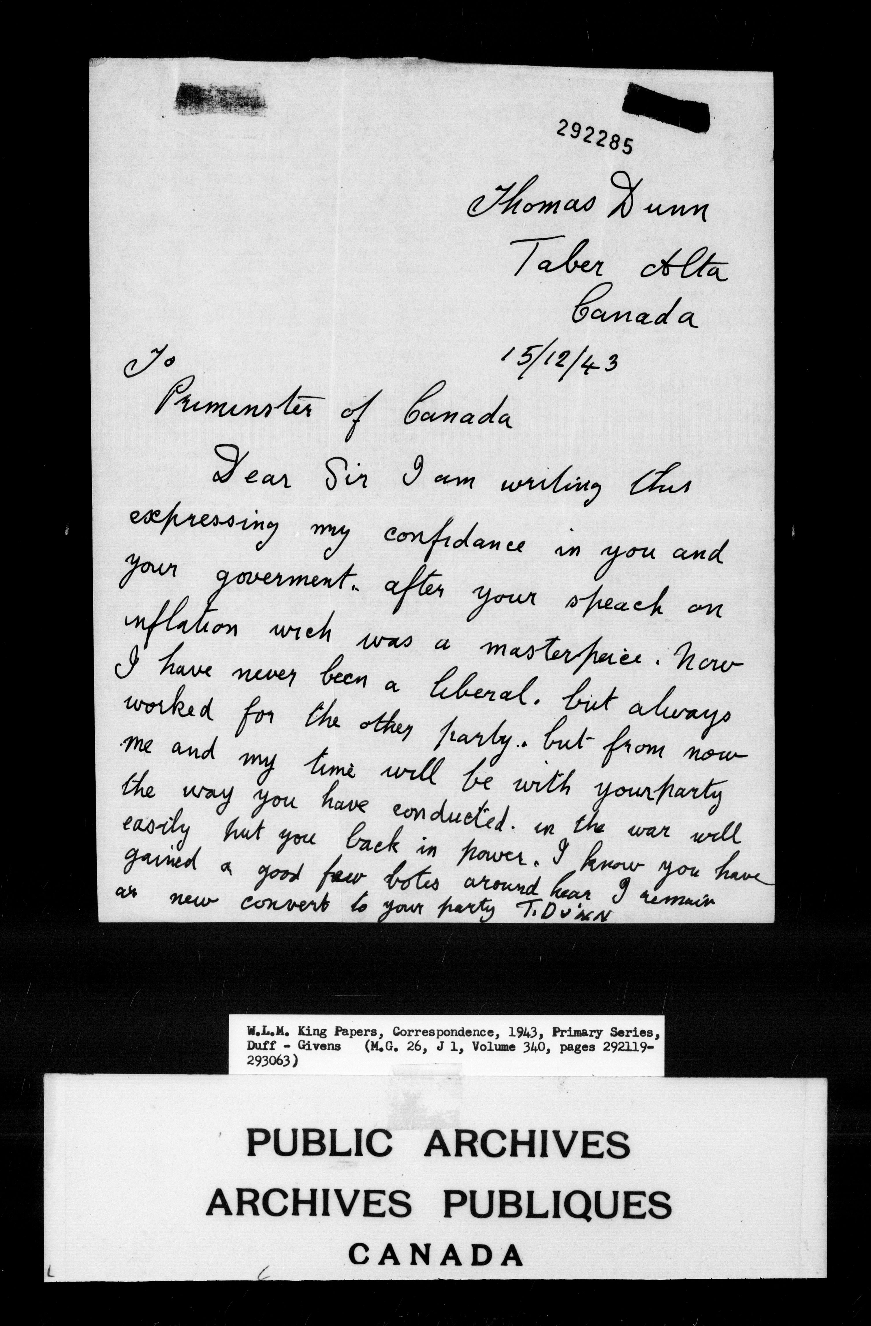 William Lyon Mackenzie King : Primary series correspondence (J1) - 7037