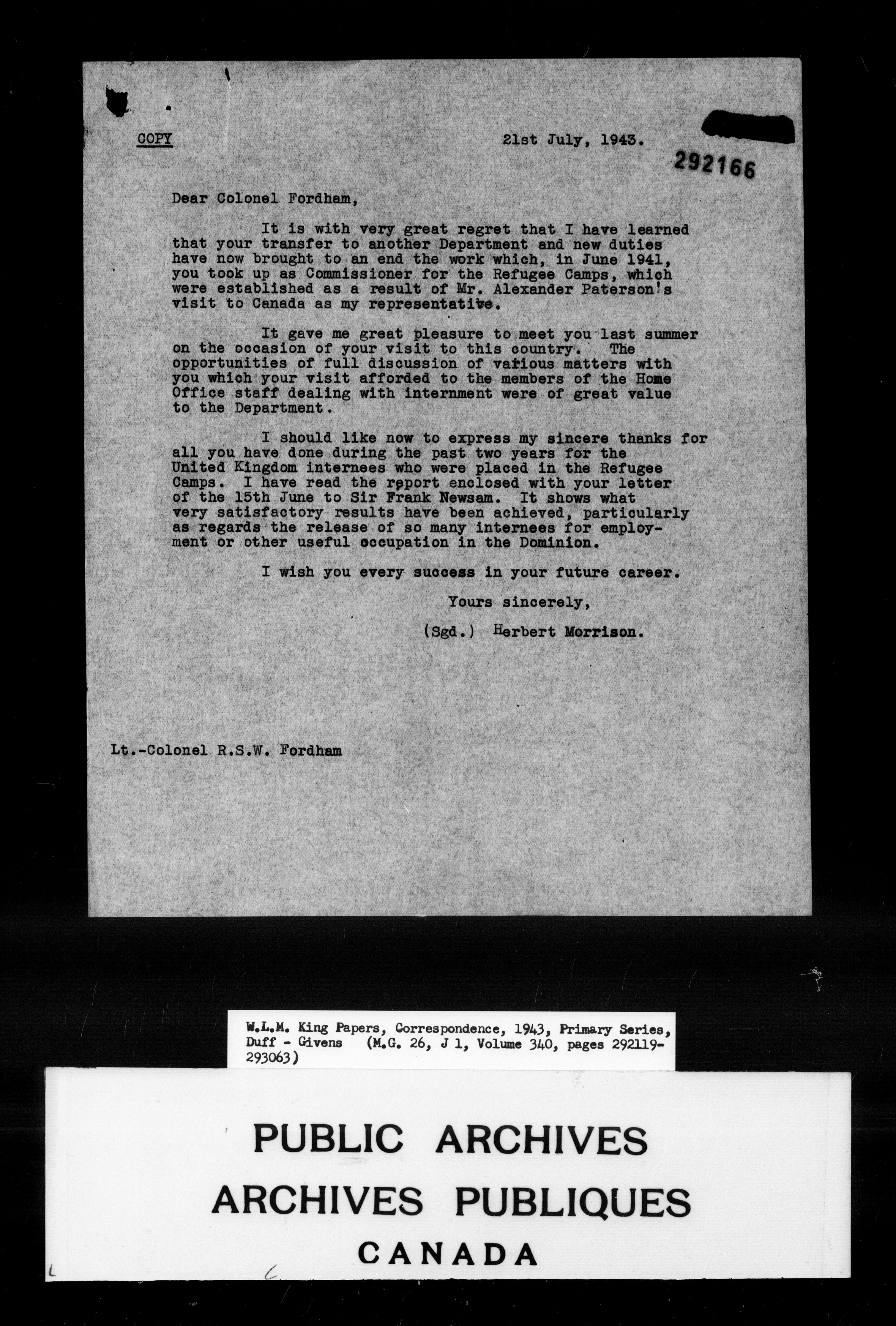William Lyon Mackenzie King : Primary series correspondence (J1) - 7037