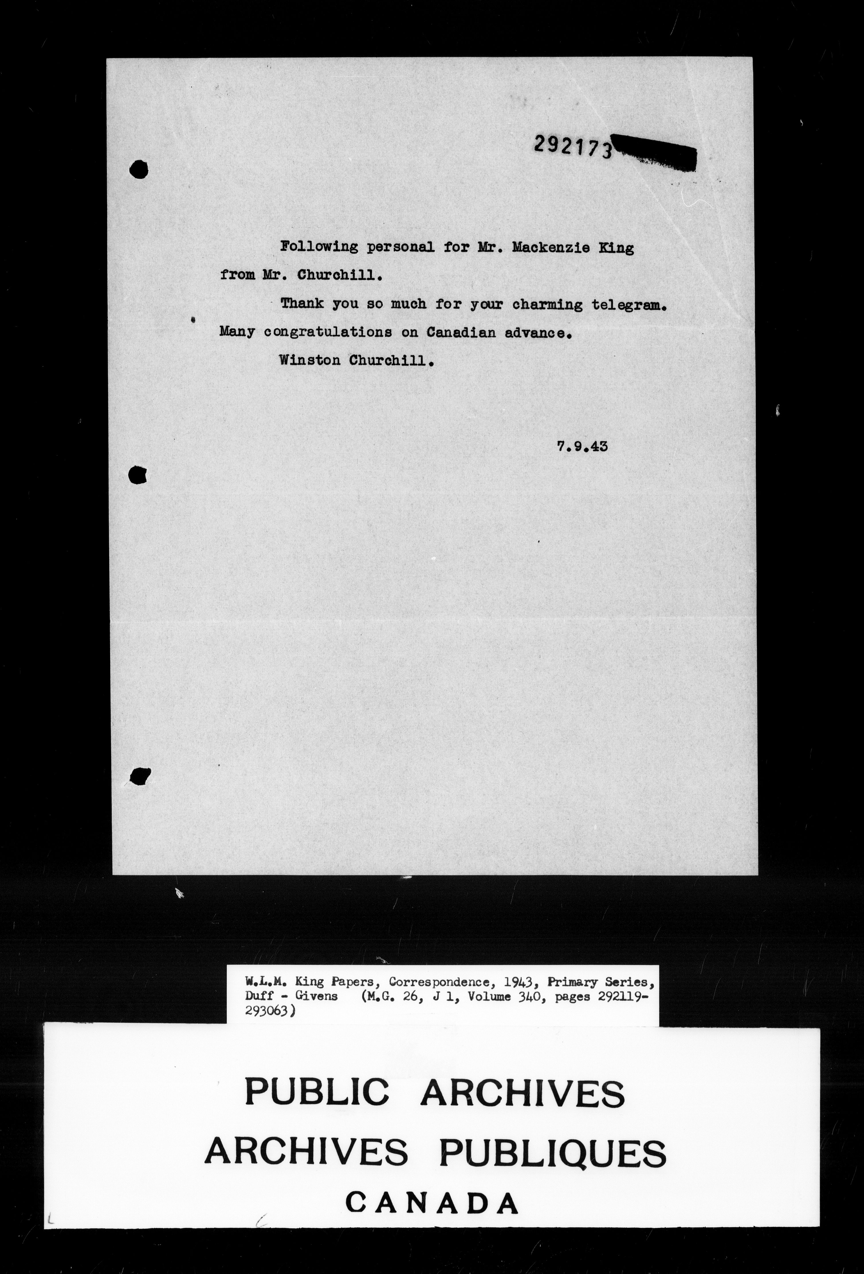 William Lyon Mackenzie King : Primary series correspondence (J1) - 7037
