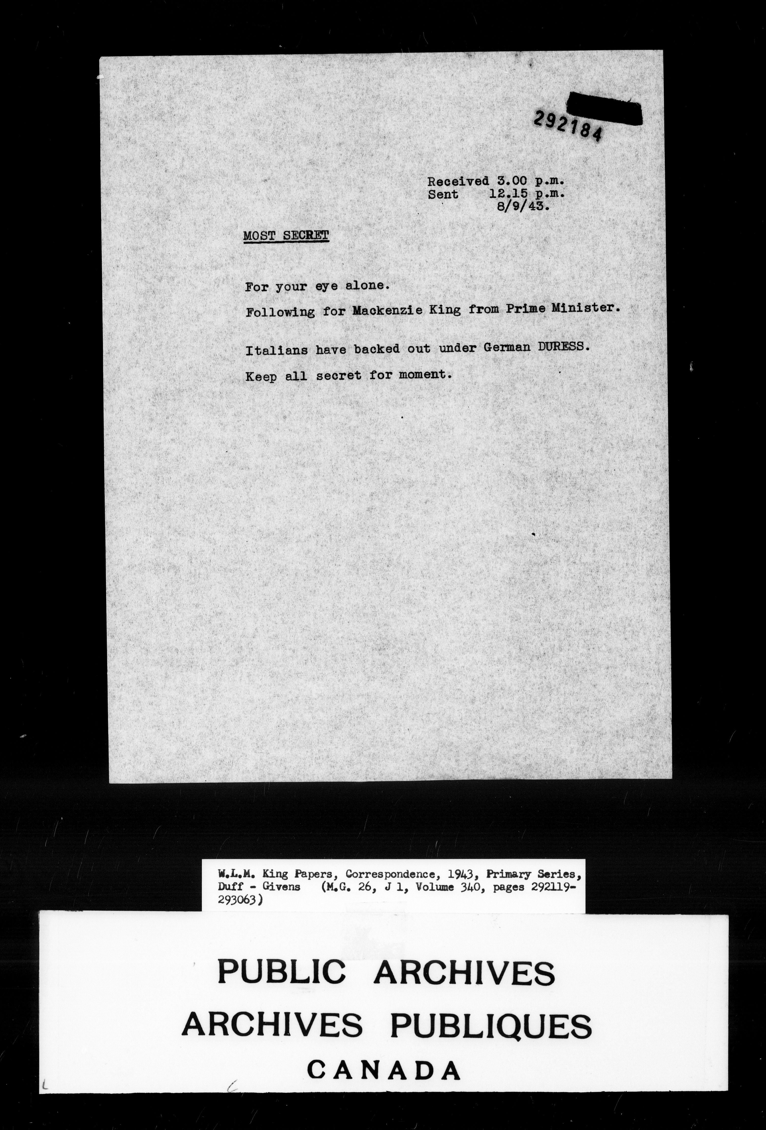 William Lyon Mackenzie King : Primary series correspondence (J1) - 7037