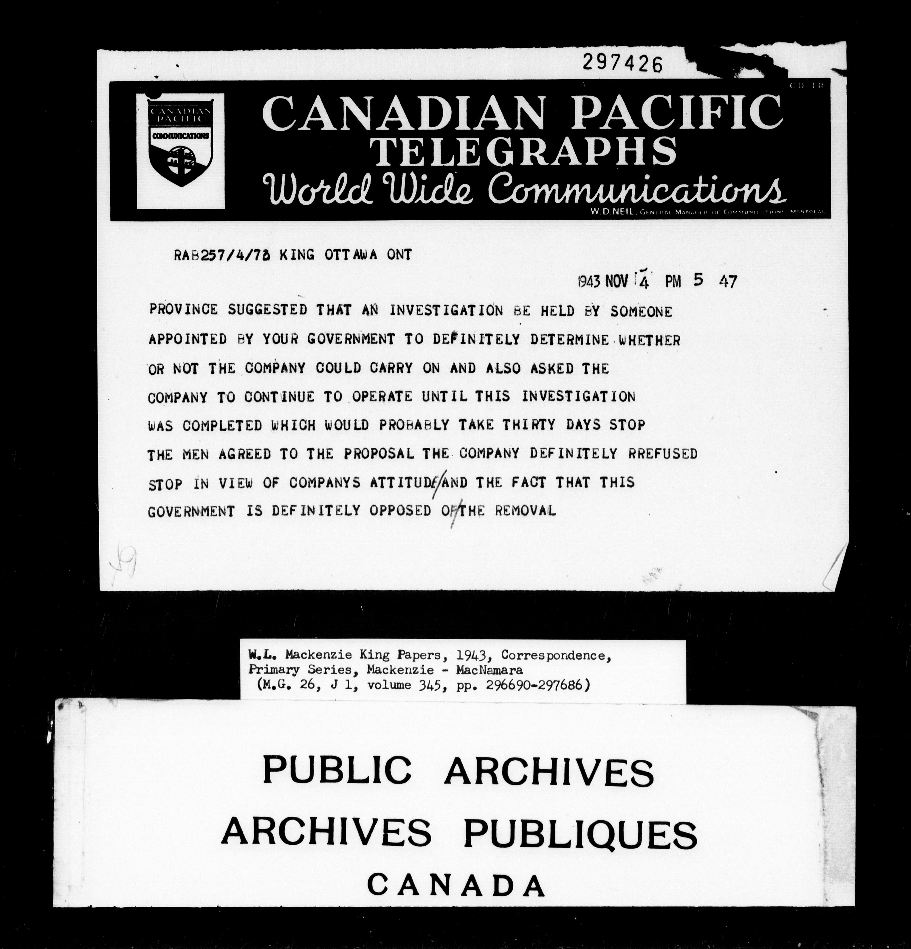 William Lyon Mackenzie King : Primary series correspondence (J1) : C-7040