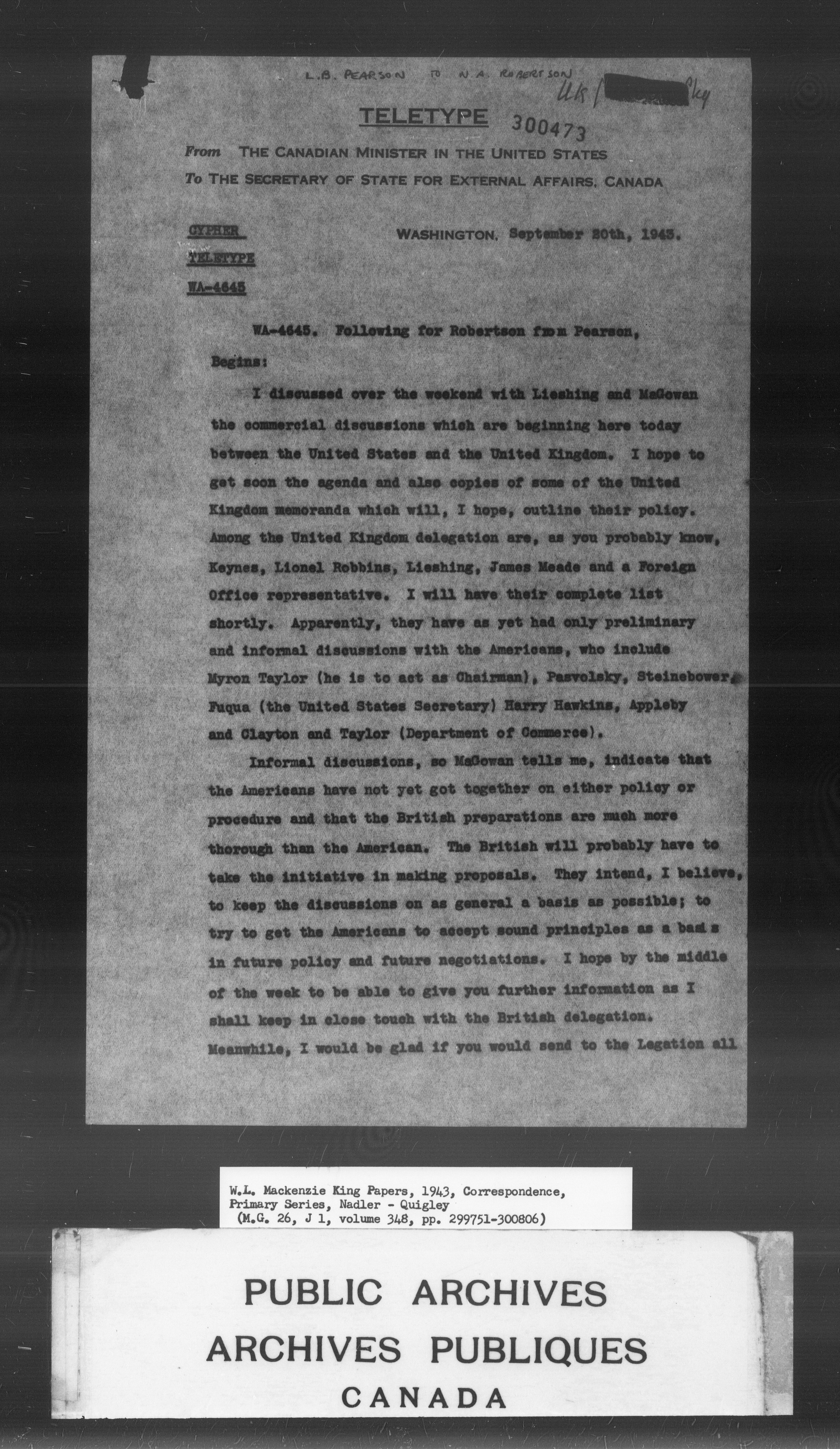 William Lyon Mackenzie King : Primary series correspondence (J1) : C-7043