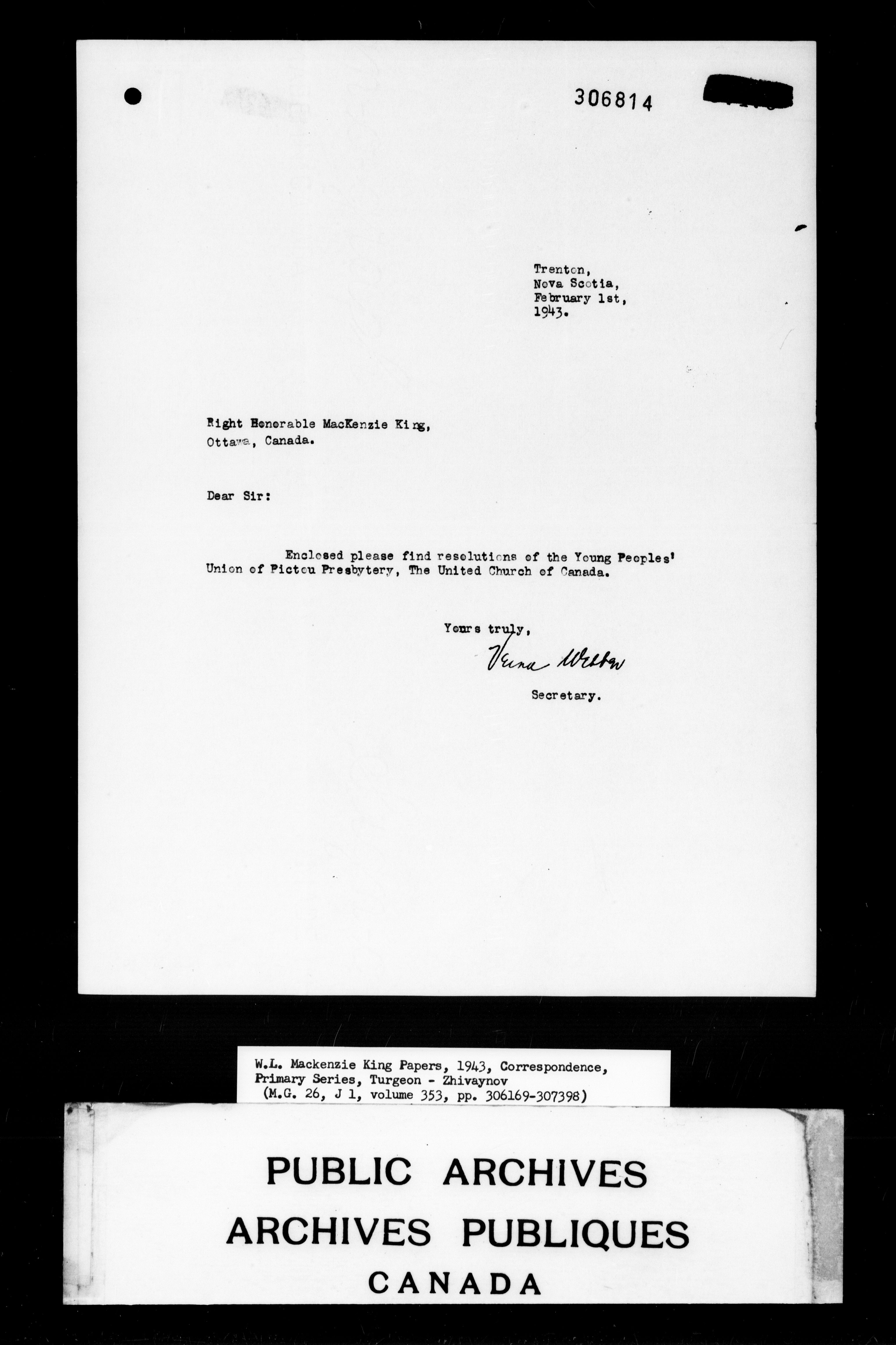 William Lyon Mackenzie King : Primary series correspondence (J1) - 7046