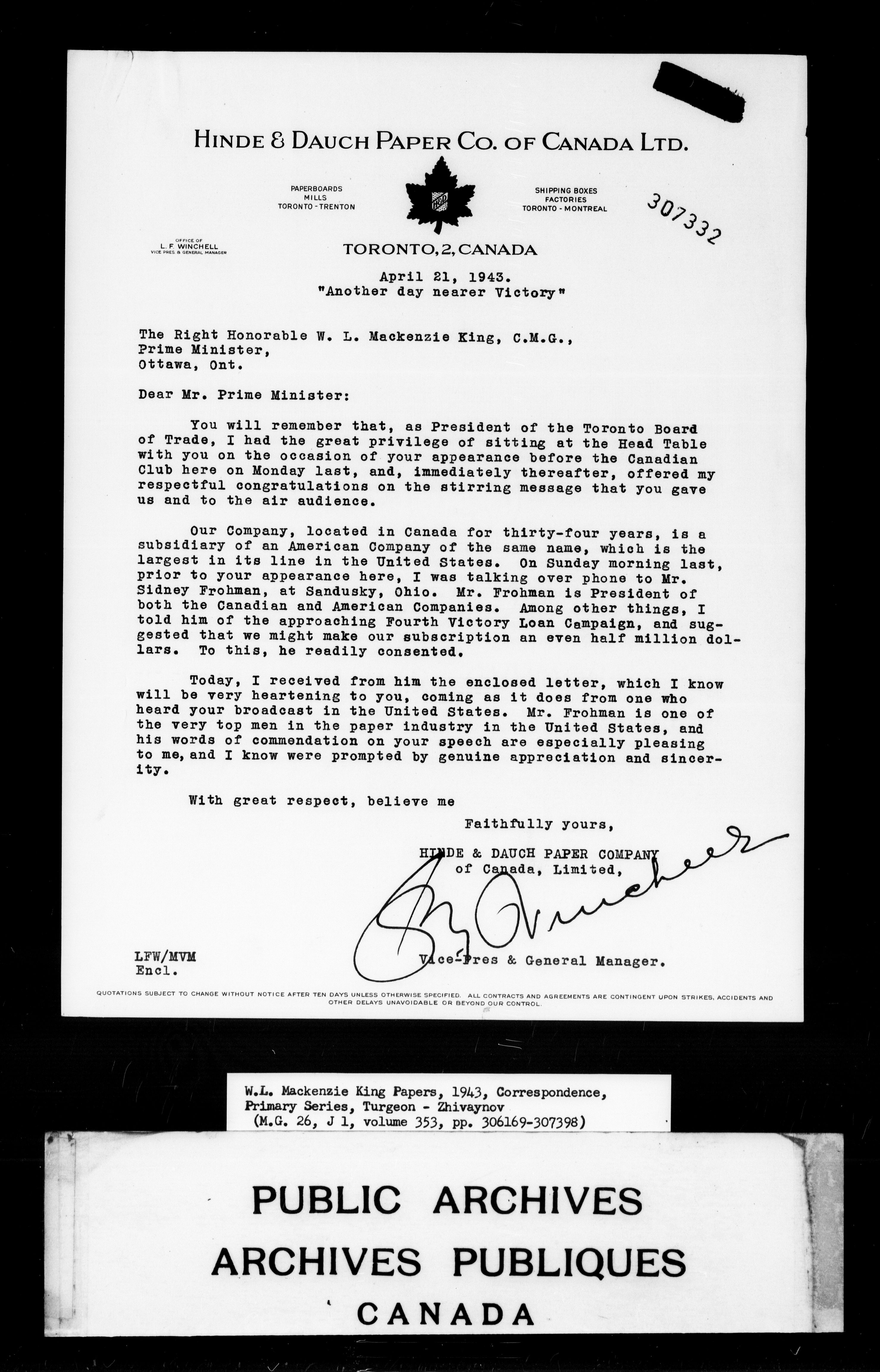 William Lyon Mackenzie King : Primary series correspondence (J1) - 7047