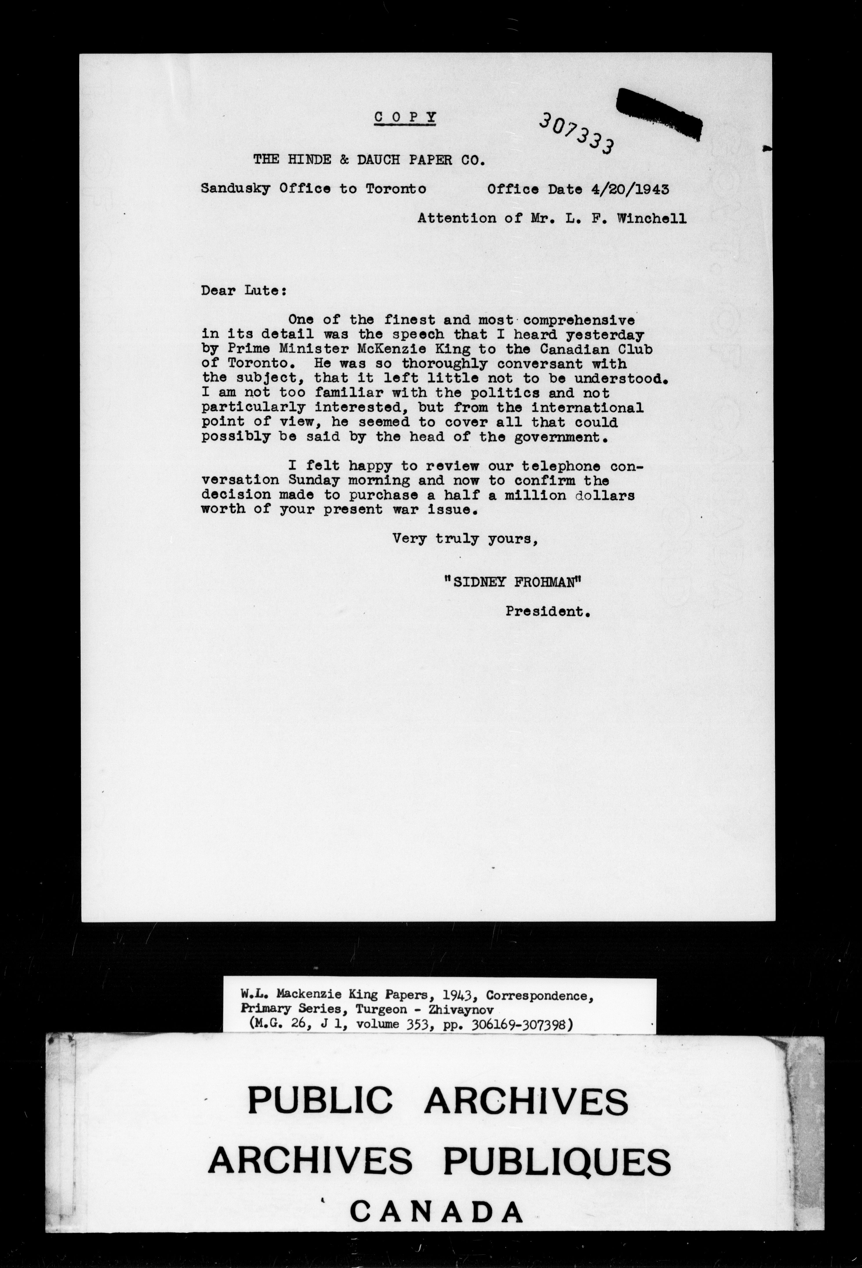 William Lyon Mackenzie King : Primary series correspondence (J1) - 7047