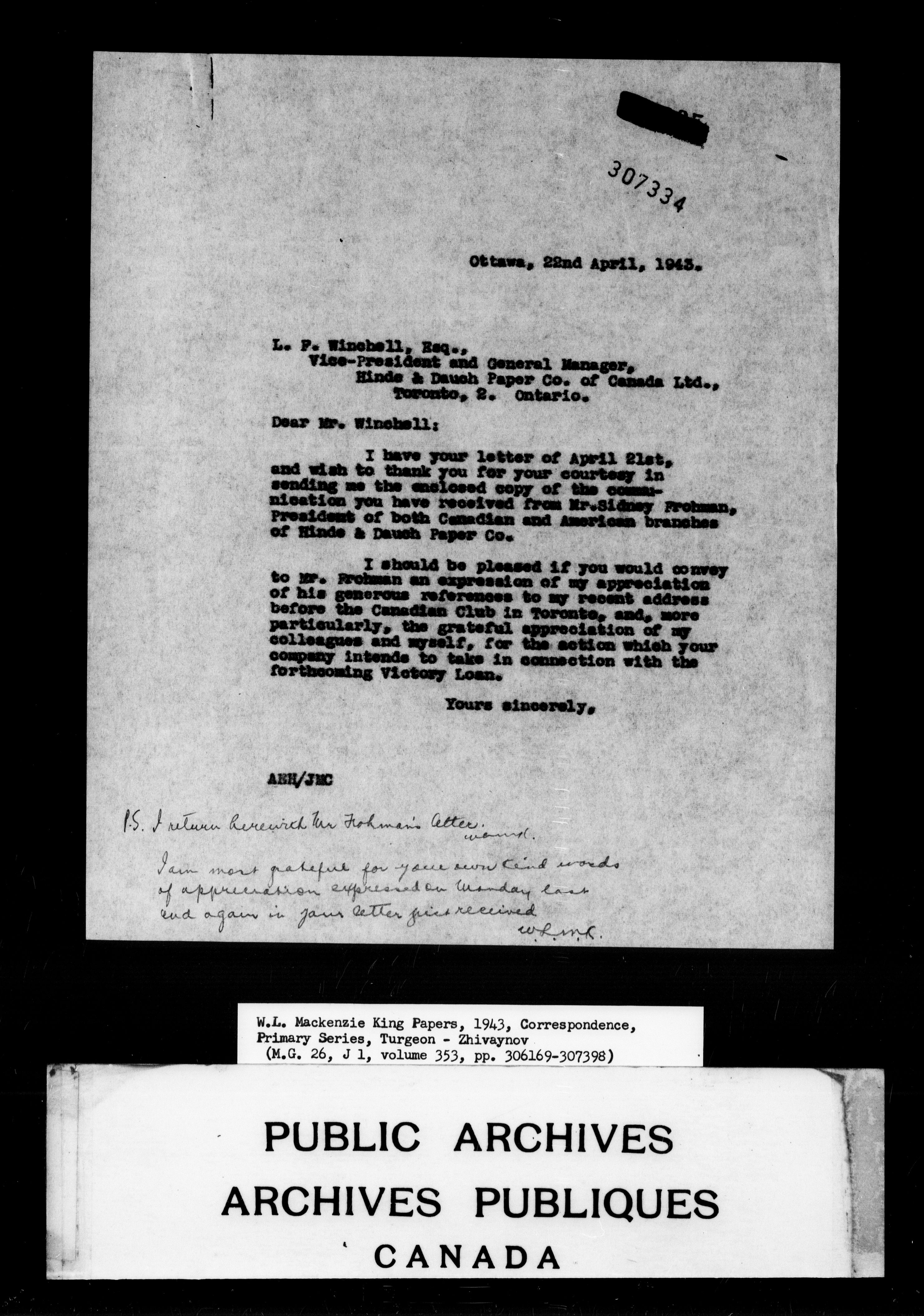 William Lyon Mackenzie King : Primary series correspondence (J1) - 7047