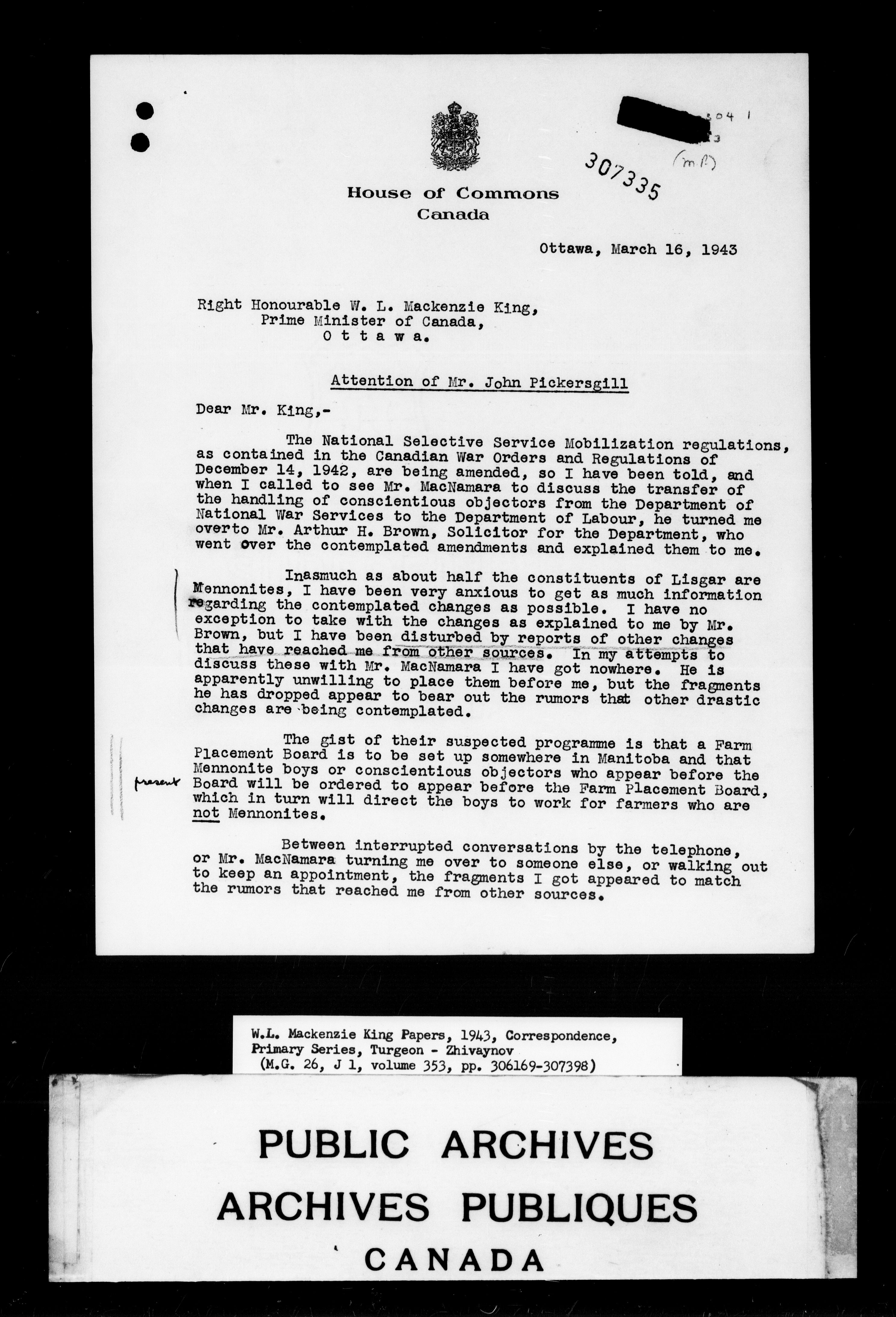 William Lyon Mackenzie King : Primary series correspondence (J1) - 7047