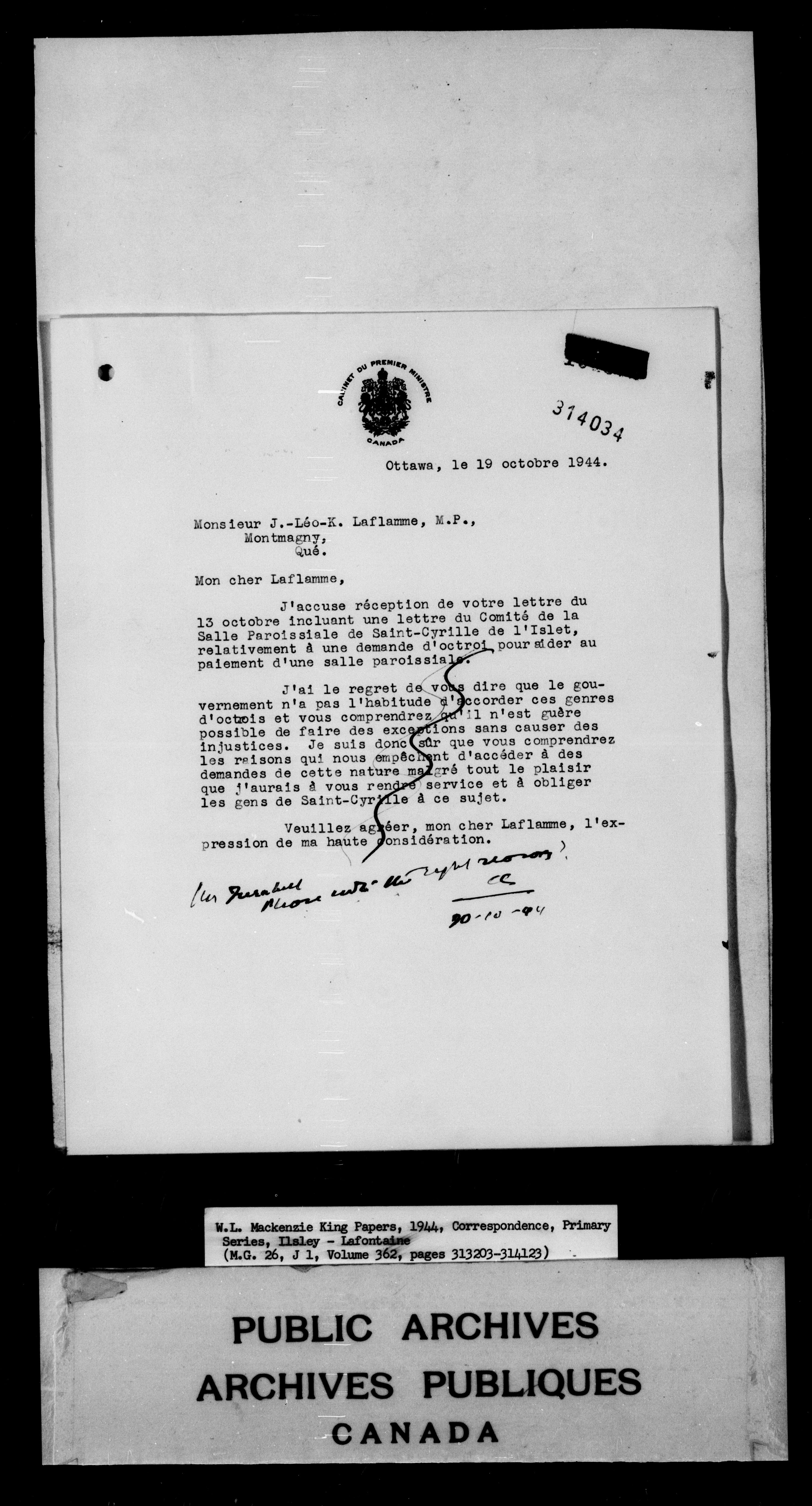 William Lyon Mackenzie King : Primary series correspondence (J1) - 7051