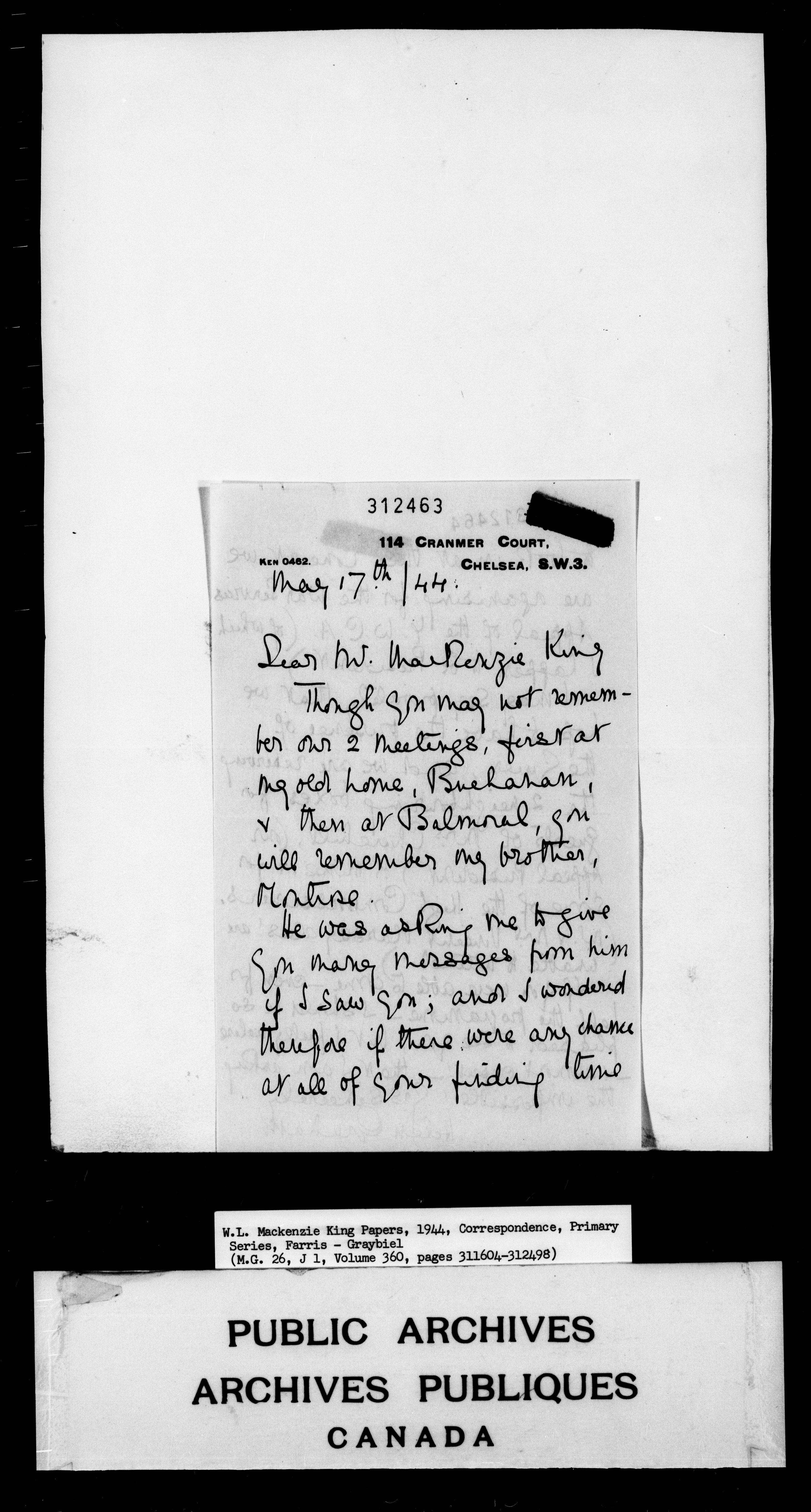 William Lyon Mackenzie King : Primary series correspondence (J1) - 7051