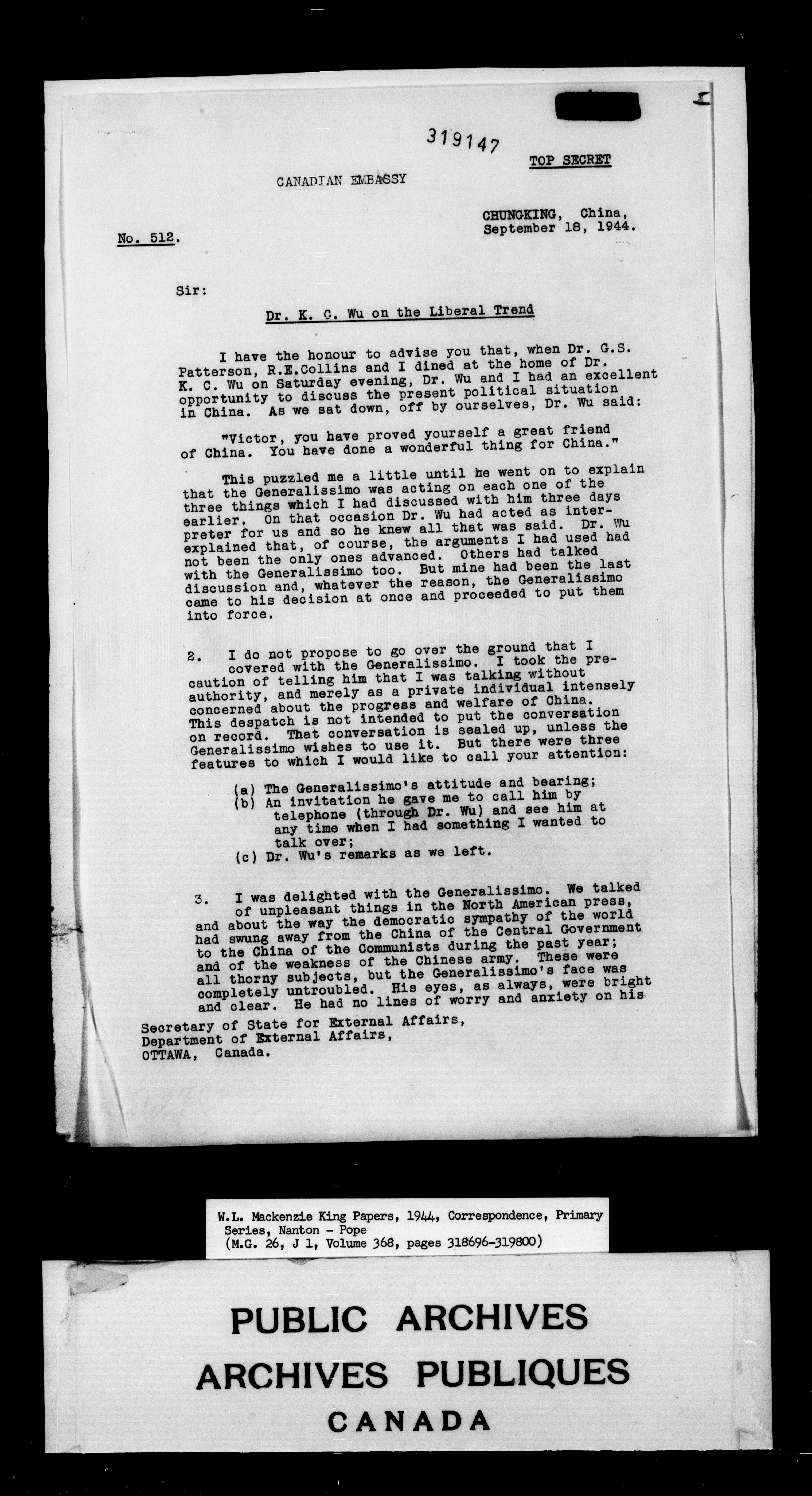 William Lyon Mackenzie King : Primary series correspondence (J1) - 7054