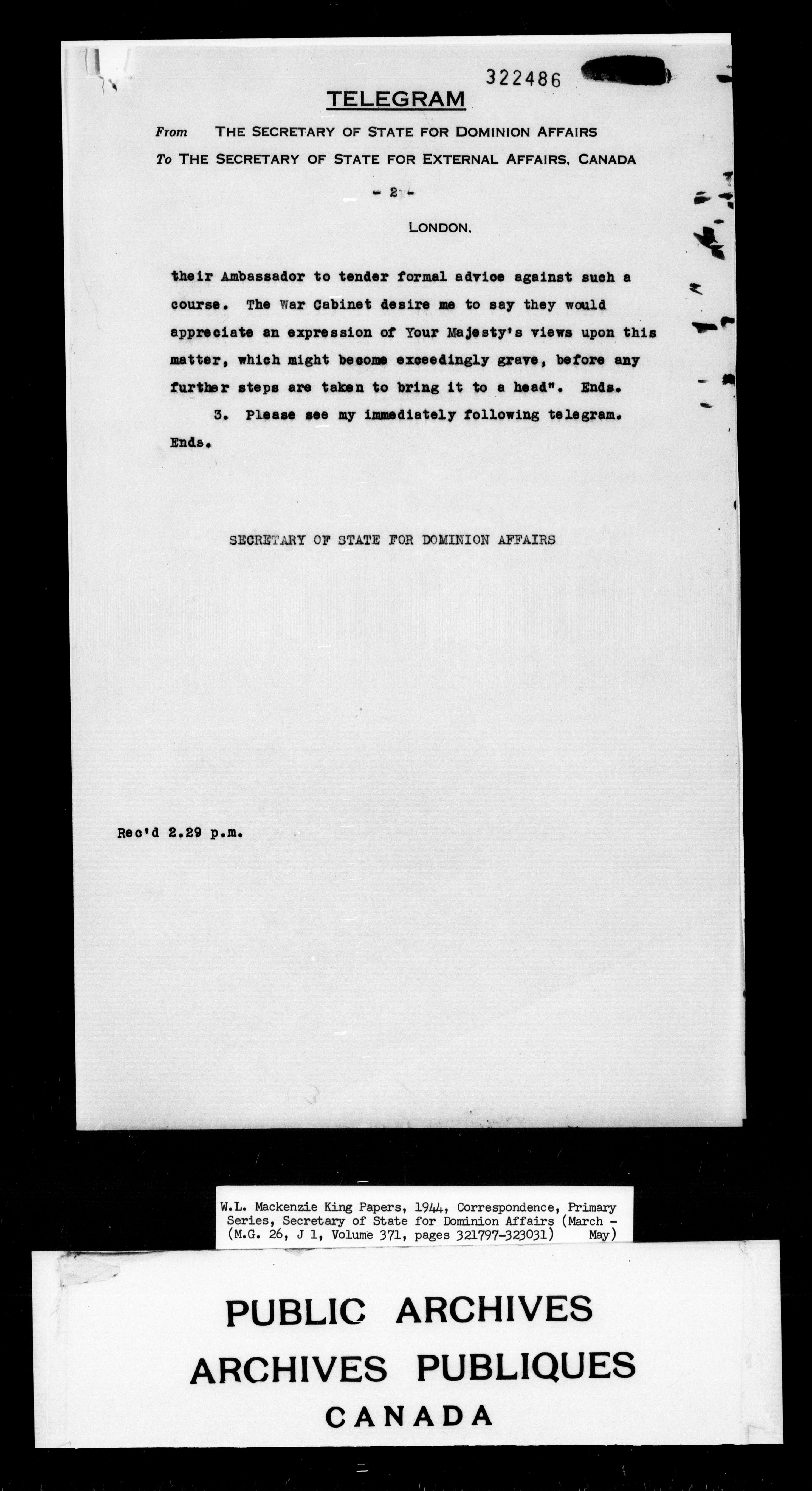 William Lyon Mackenzie King : Primary series correspondence (J1) : C-7056