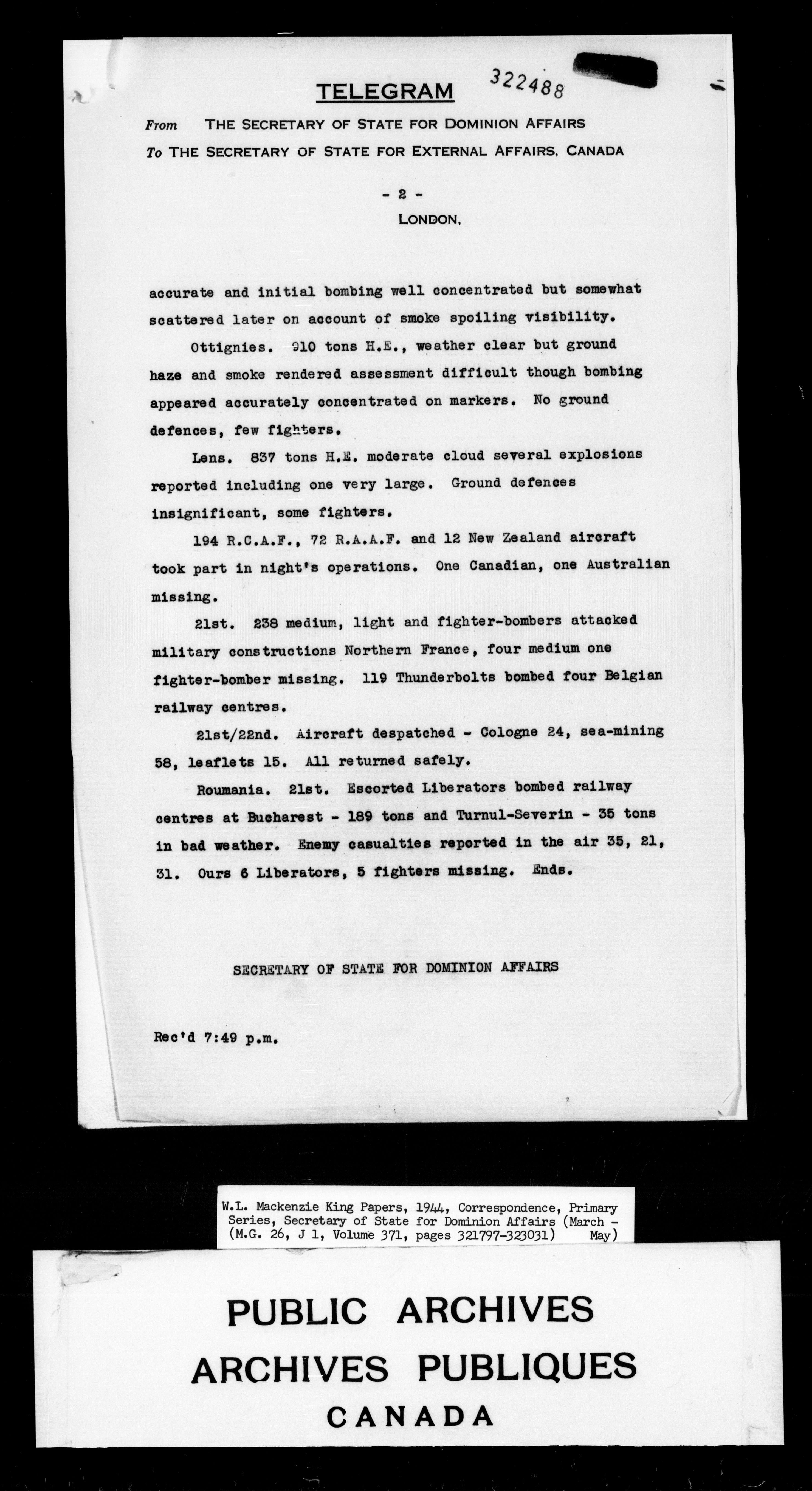 William Lyon Mackenzie King : Primary series correspondence (J1) : C-7056