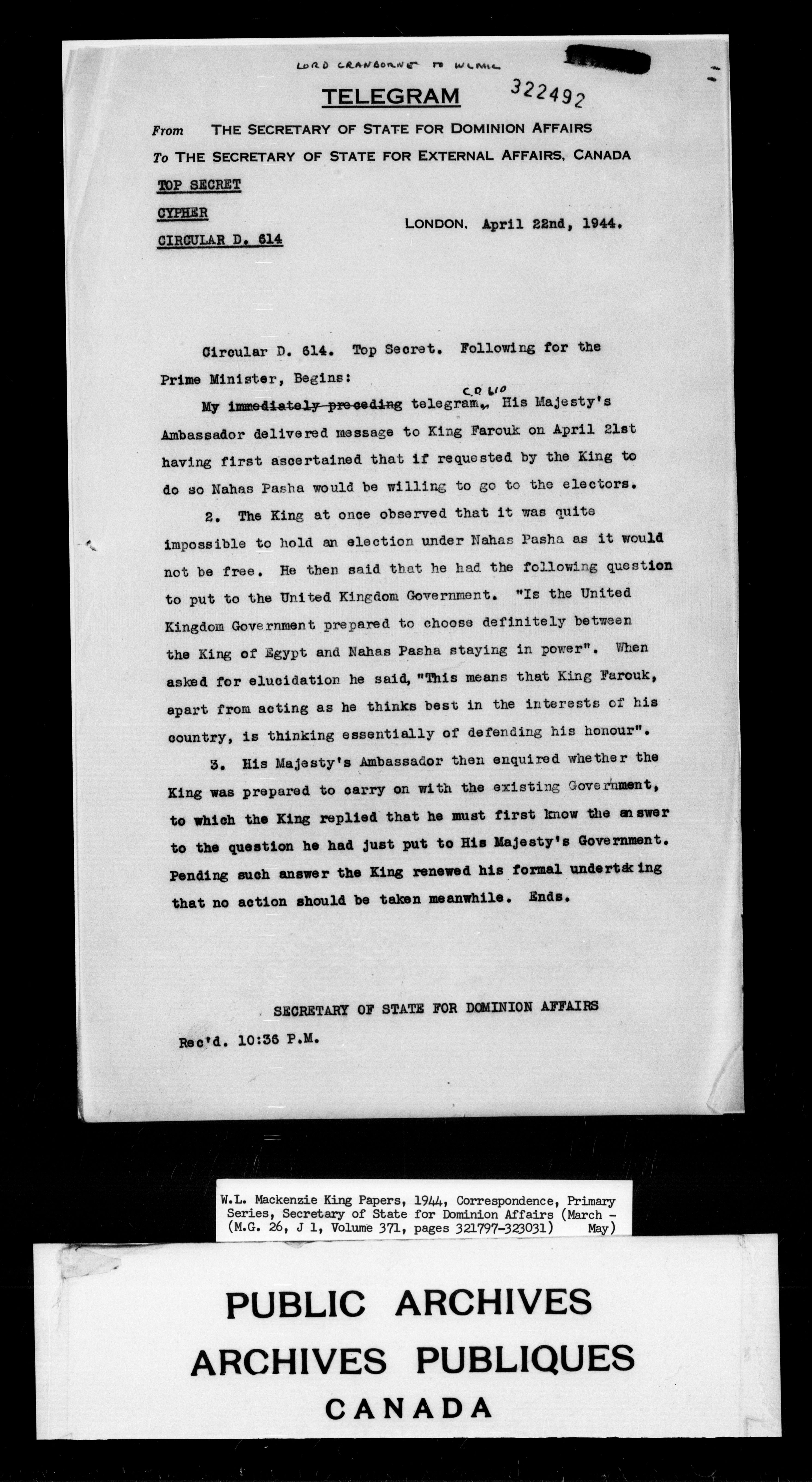 William Lyon Mackenzie King : Primary series correspondence (J1) : C-7056