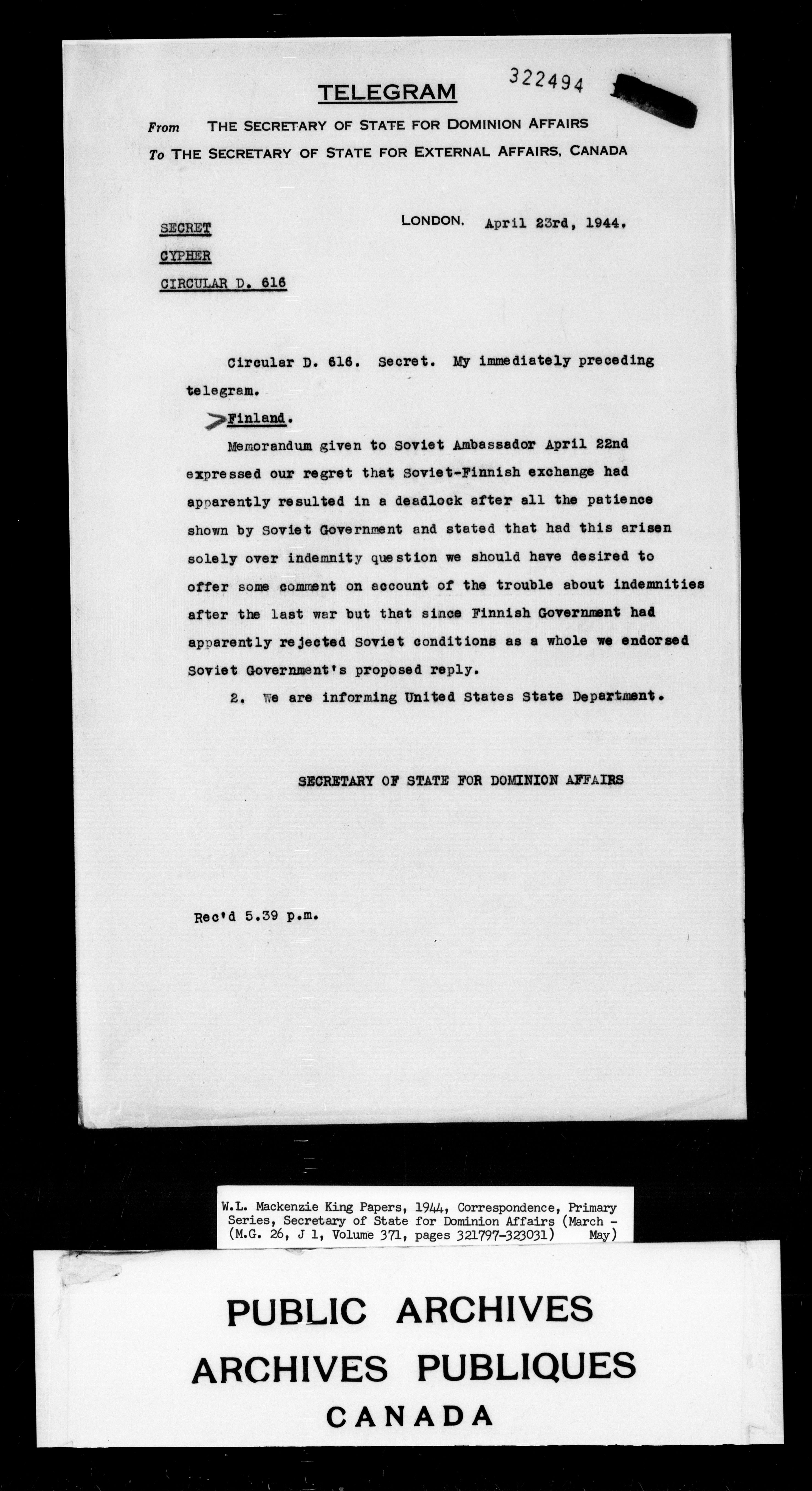 William Lyon Mackenzie King : Primary series correspondence (J1) : C-7056