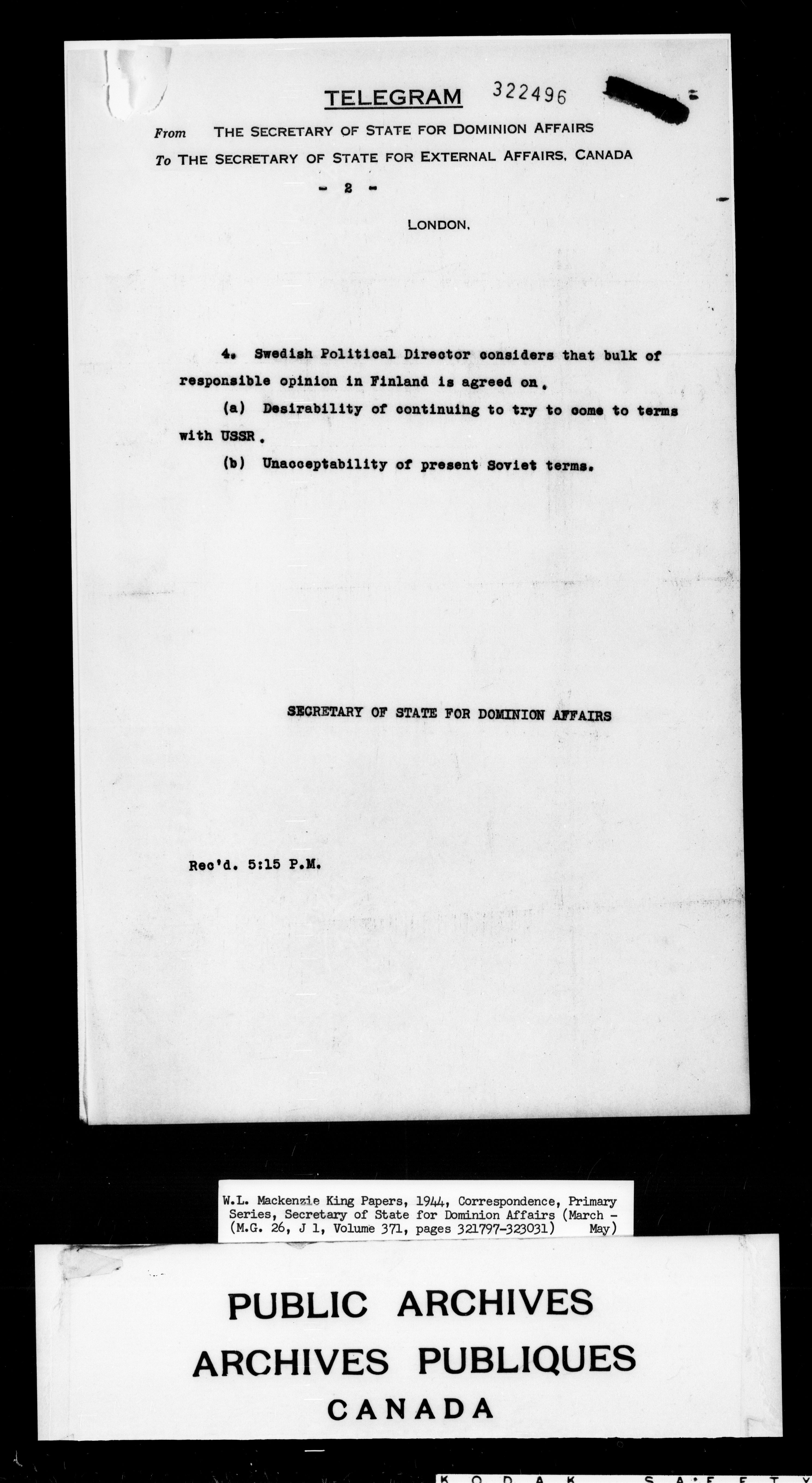 William Lyon Mackenzie King : Primary series correspondence (J1) : C-7056
