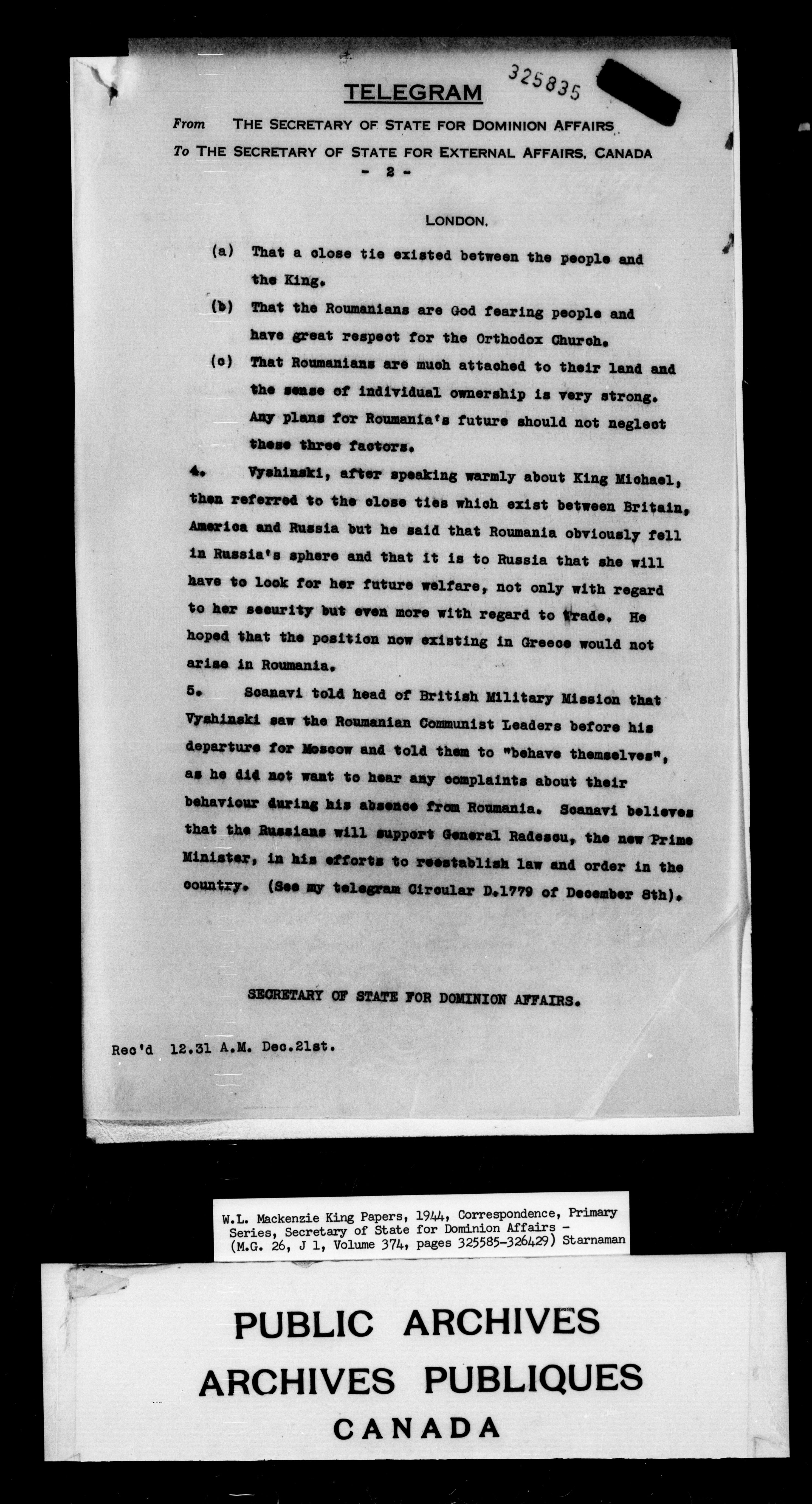 William Lyon Mackenzie King : Primary series correspondence (J1) - 7058