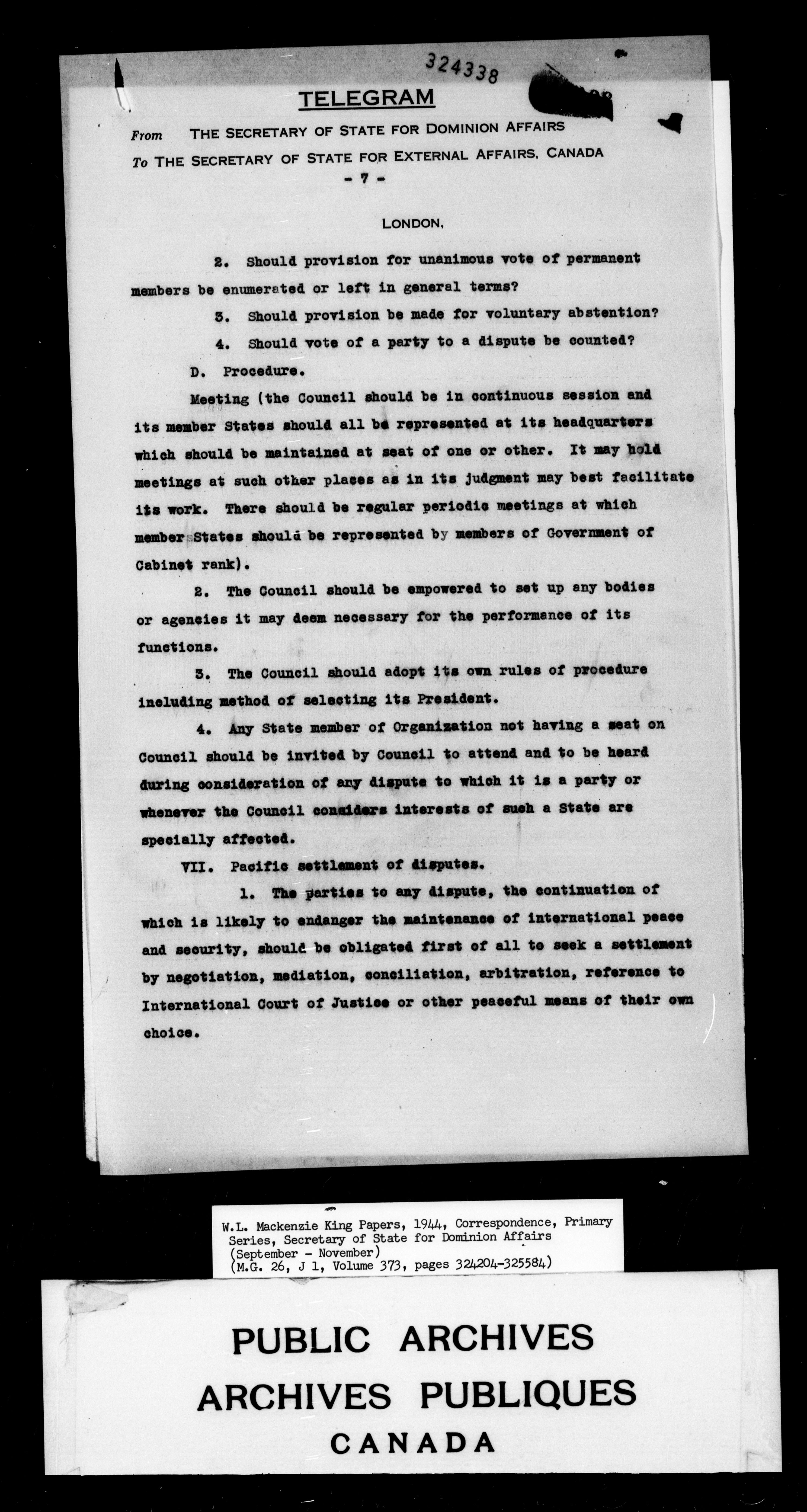 William Lyon Mackenzie King : Primary series correspondence (J1) - 7058