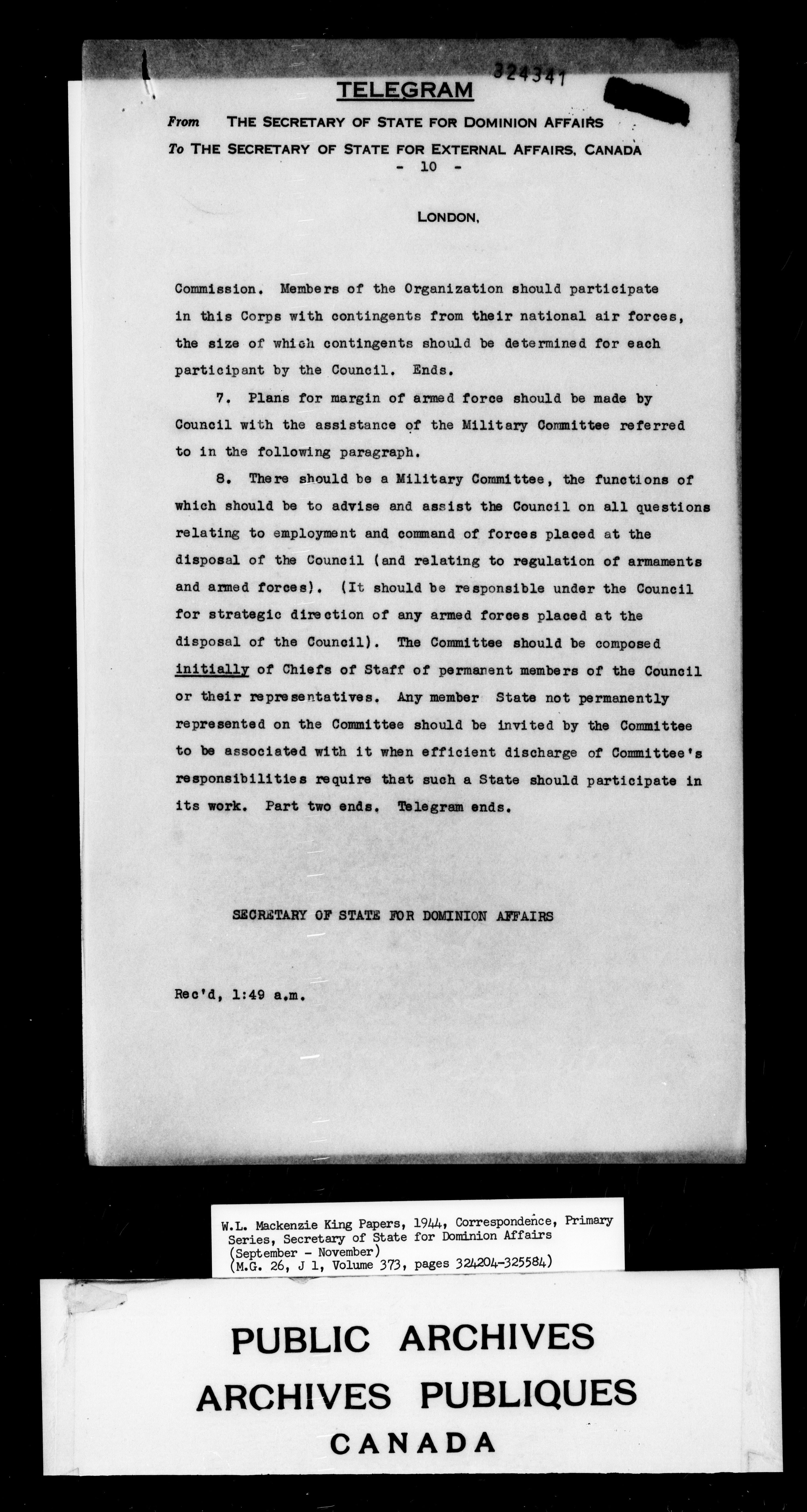 William Lyon Mackenzie King : Primary series correspondence (J1) - 7058