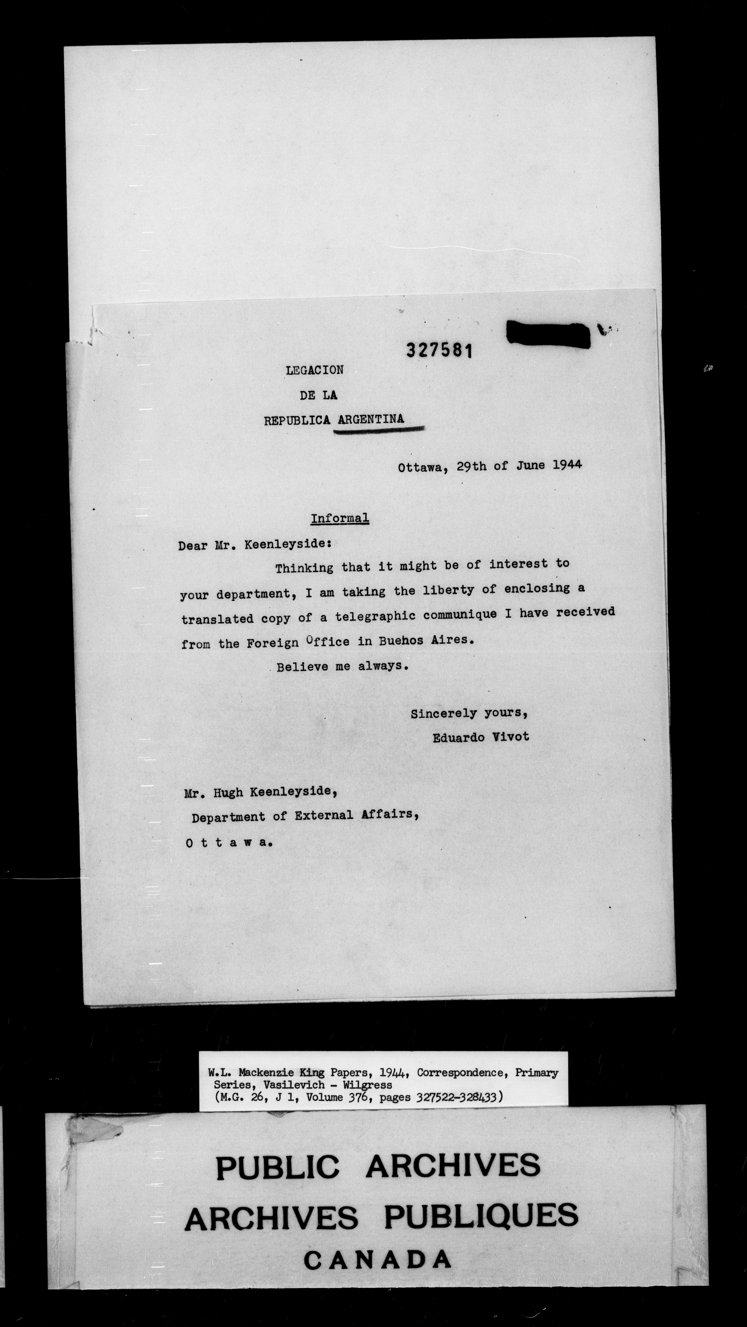 William Lyon Mackenzie King : Primary series correspondence (J1) : C-7059