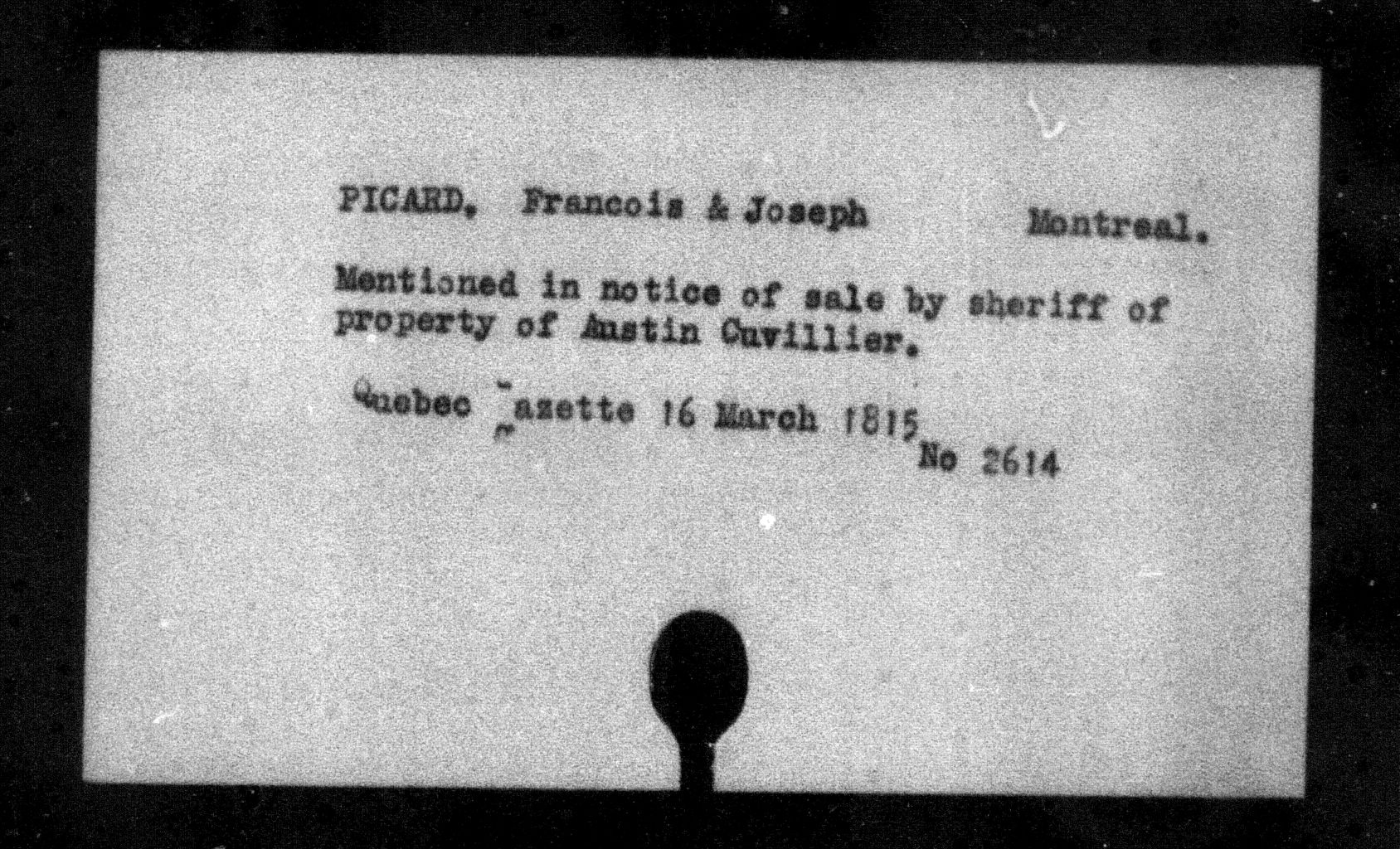 Quebec Gazette : Finding Aid 1807, the card index : C-7087