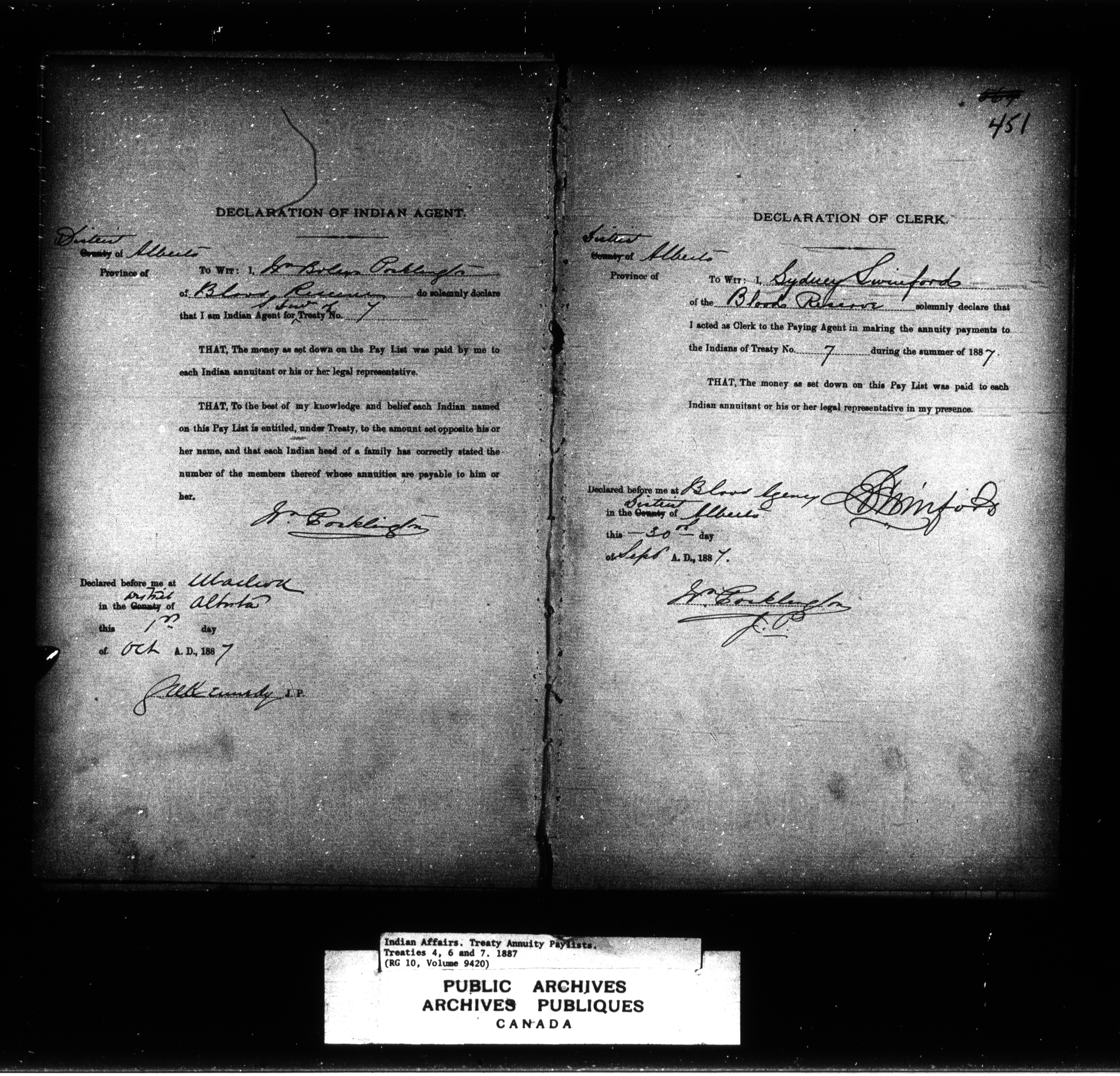 Indian Affairs, Annuity Paylists, Treaties 4, 6 and 7 1887 - 7147