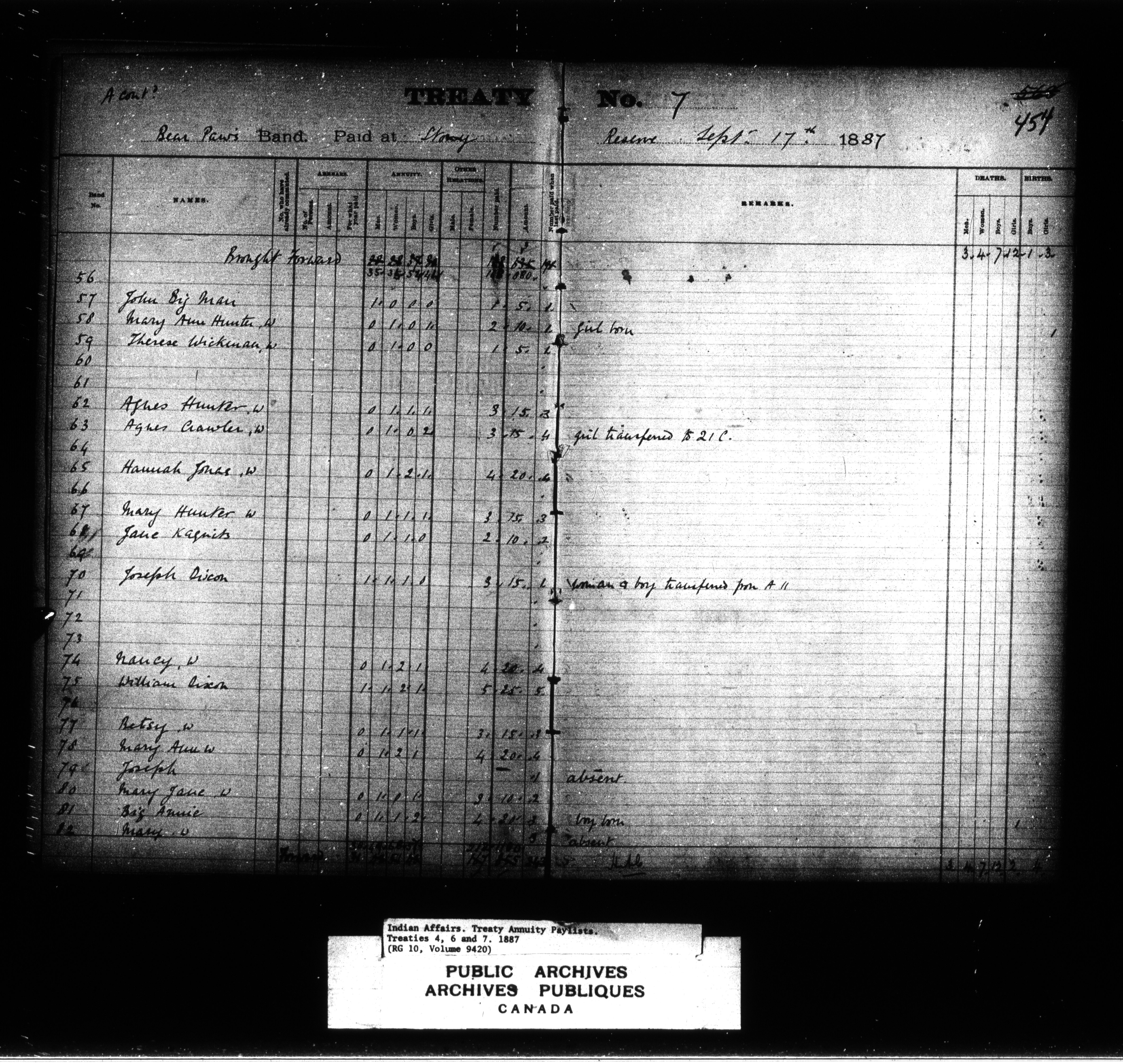 Indian Affairs, Annuity Paylists, Treaties 4, 6 and 7 1887 - 7147