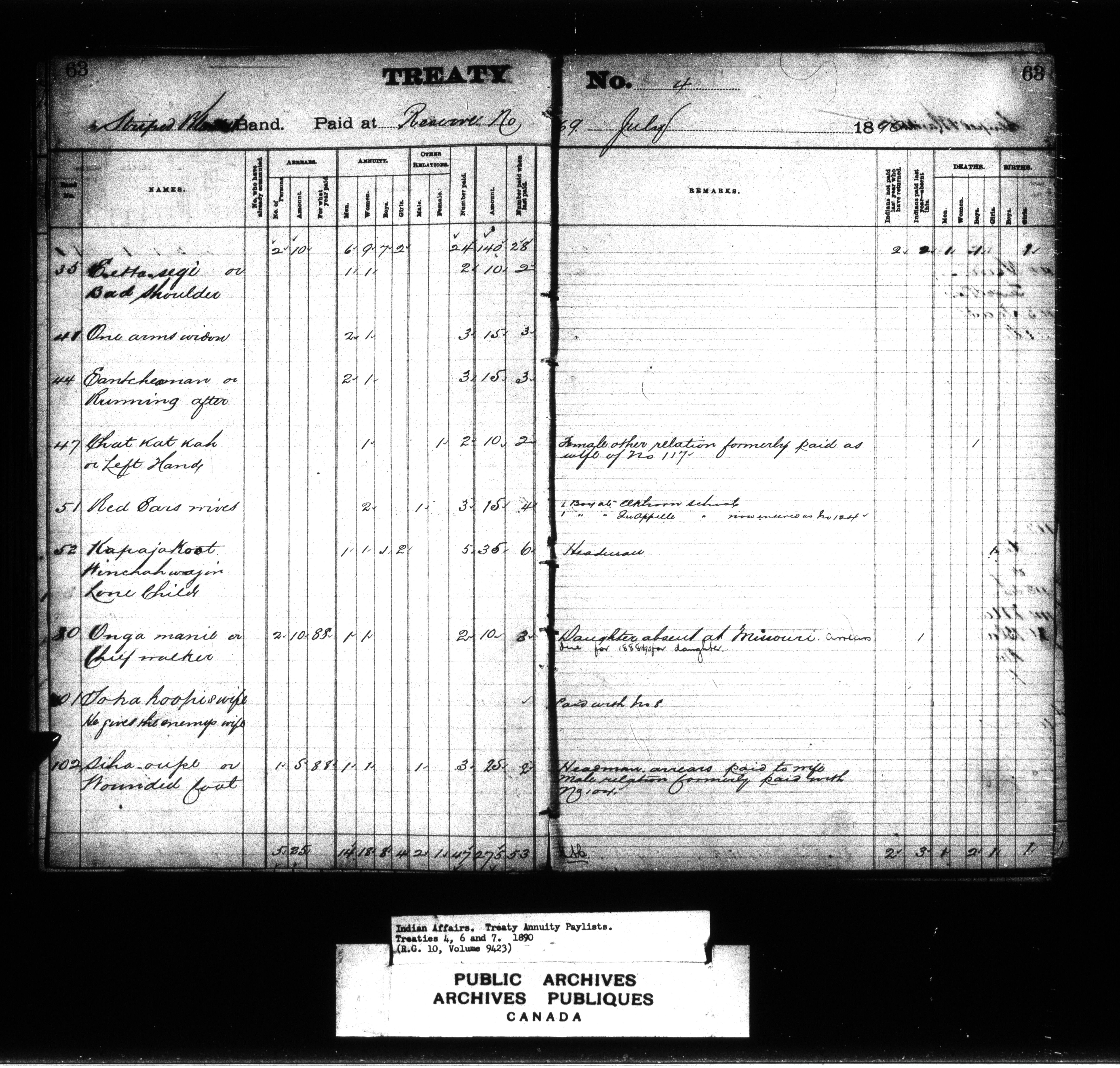 Indian Affairs, Annuity Paylists, Treaties 4, 6 and 7 1887 - 7147