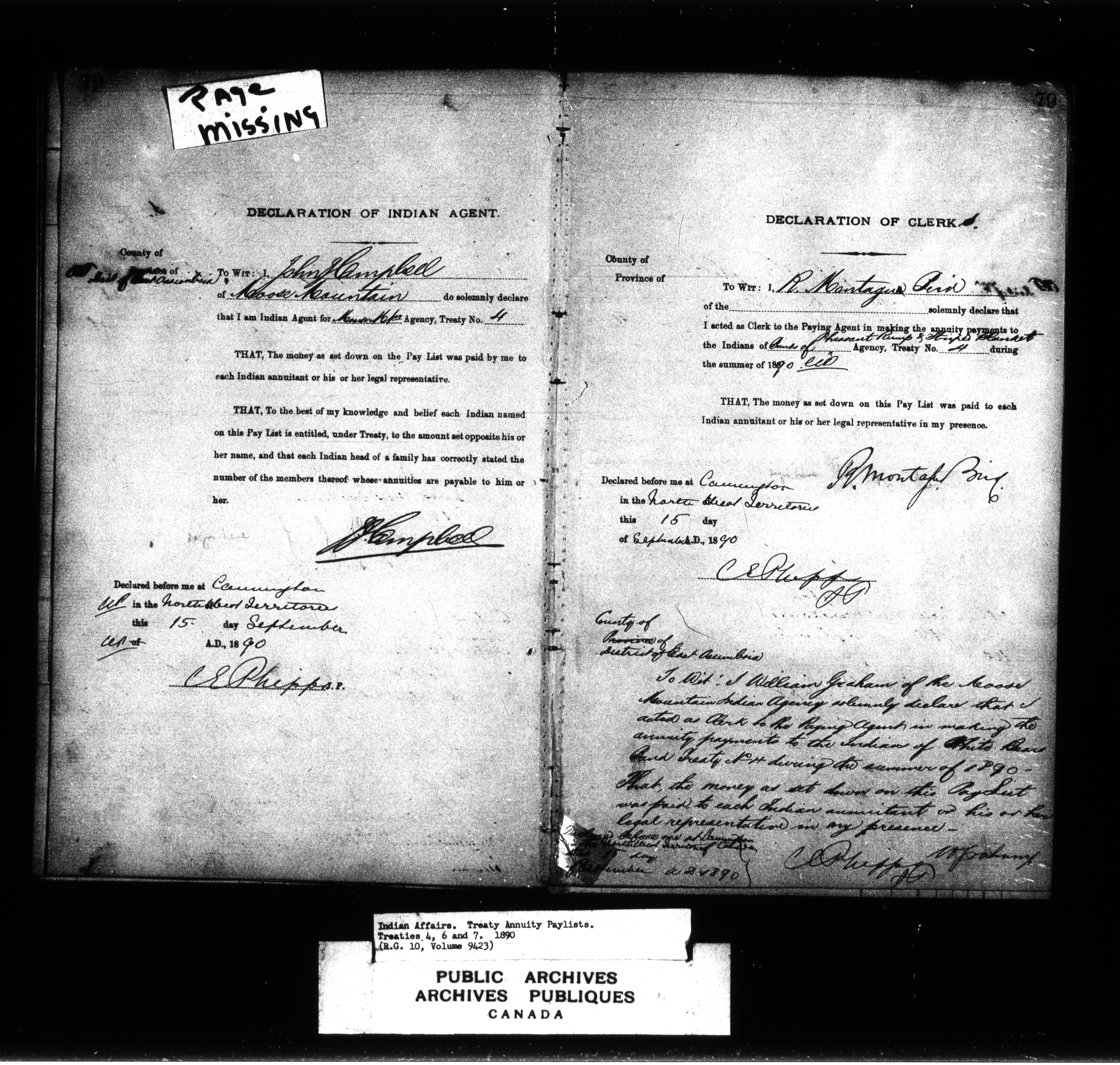 Indian Affairs, Annuity Paylists, Treaties 4, 6 and 7 1887 - 7147